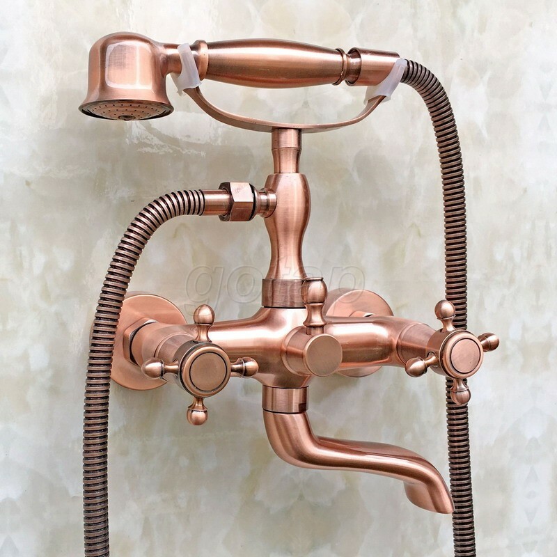 как выглядит Red Copper Clawfoot Wall Mount Bathtub Faucet Hand Held Shower Filler Mixer Tap фото