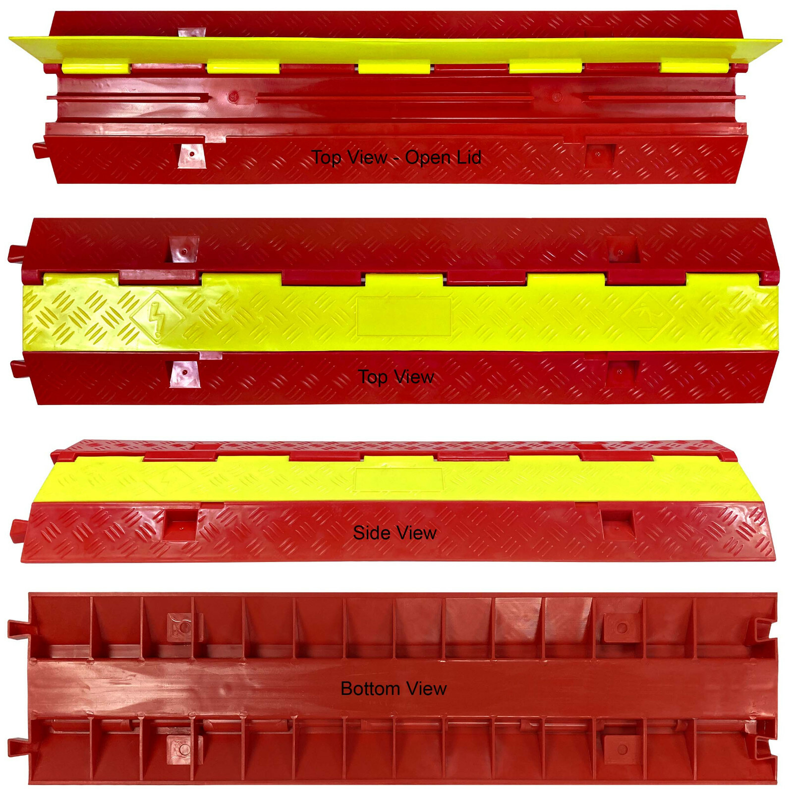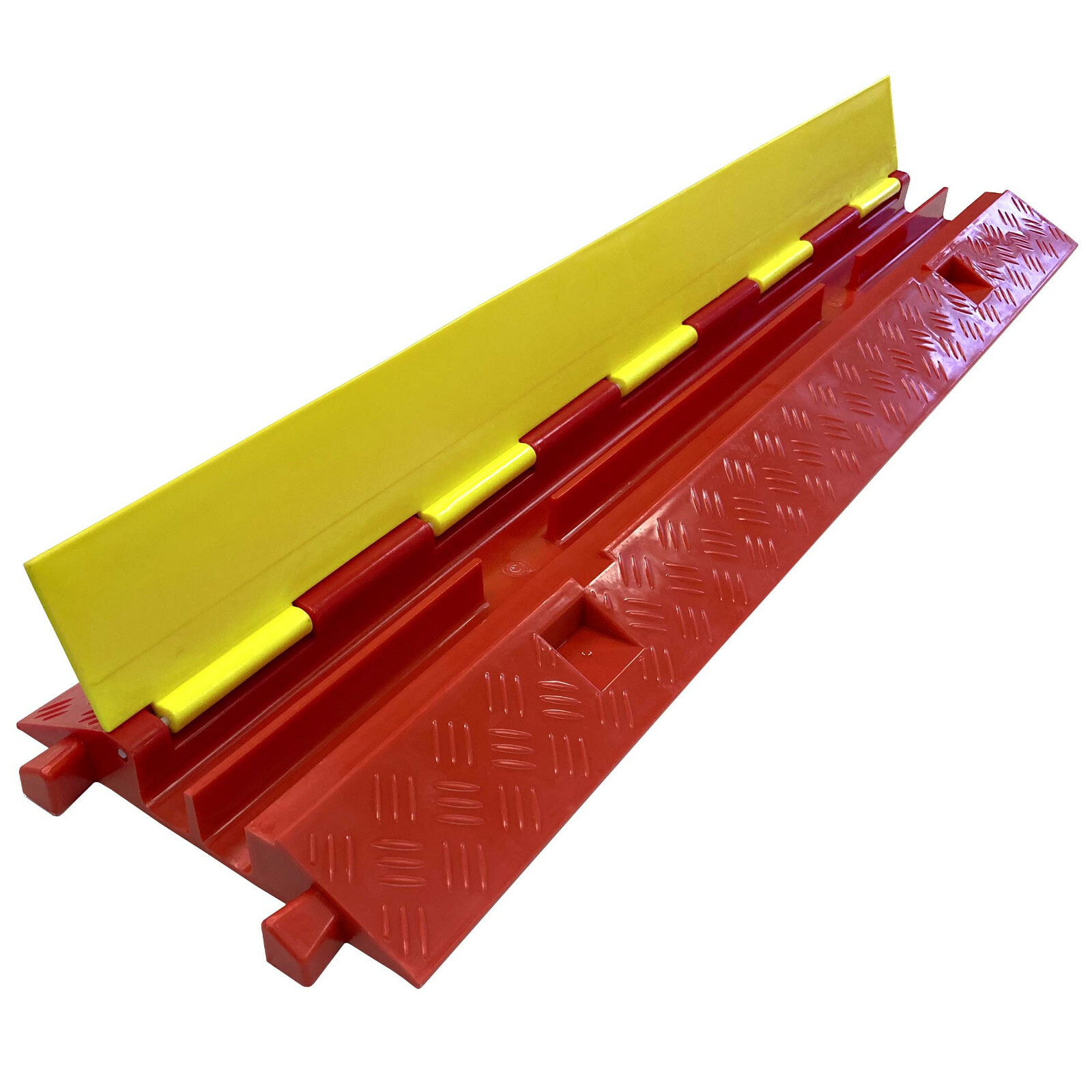 2 Channel Plastic Cable Protector Ramp for up to 1.25 OD Hose - Yellow/Orange