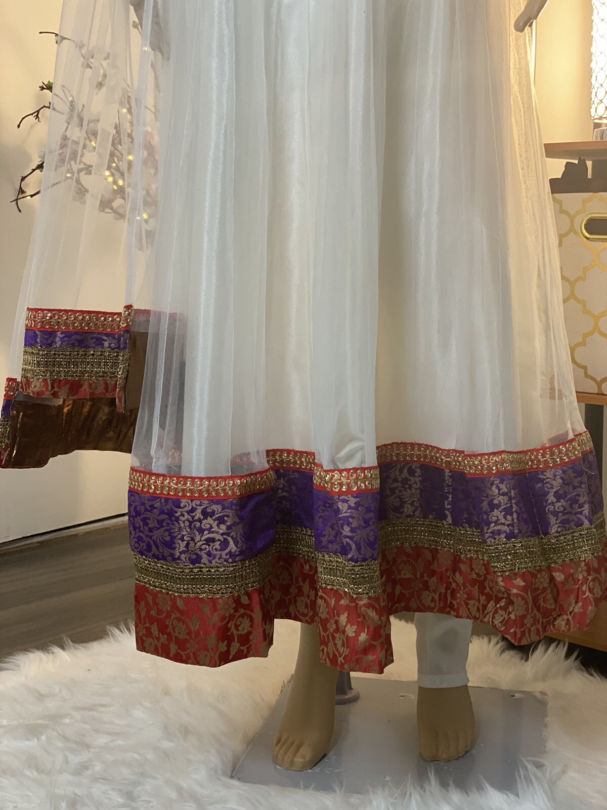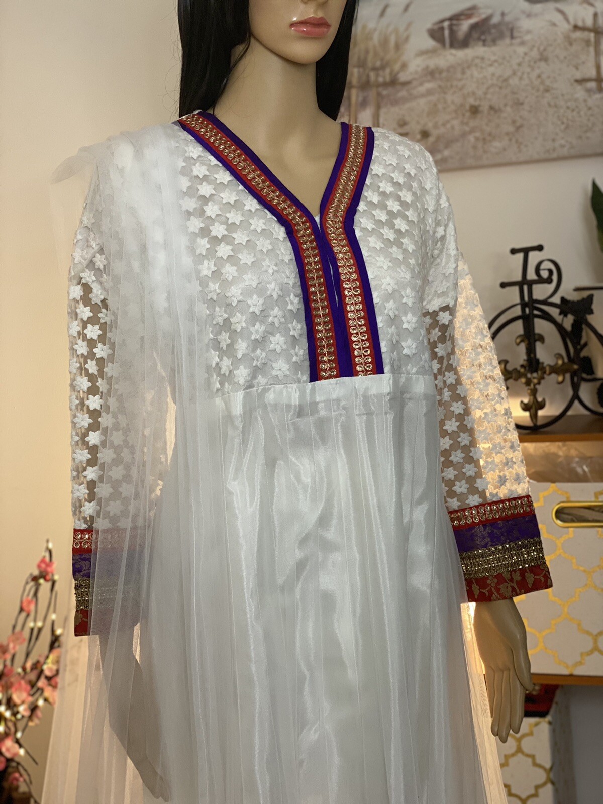 как выглядит Indian/Pakistani White Net Long Dress Maxi Party Wear фото