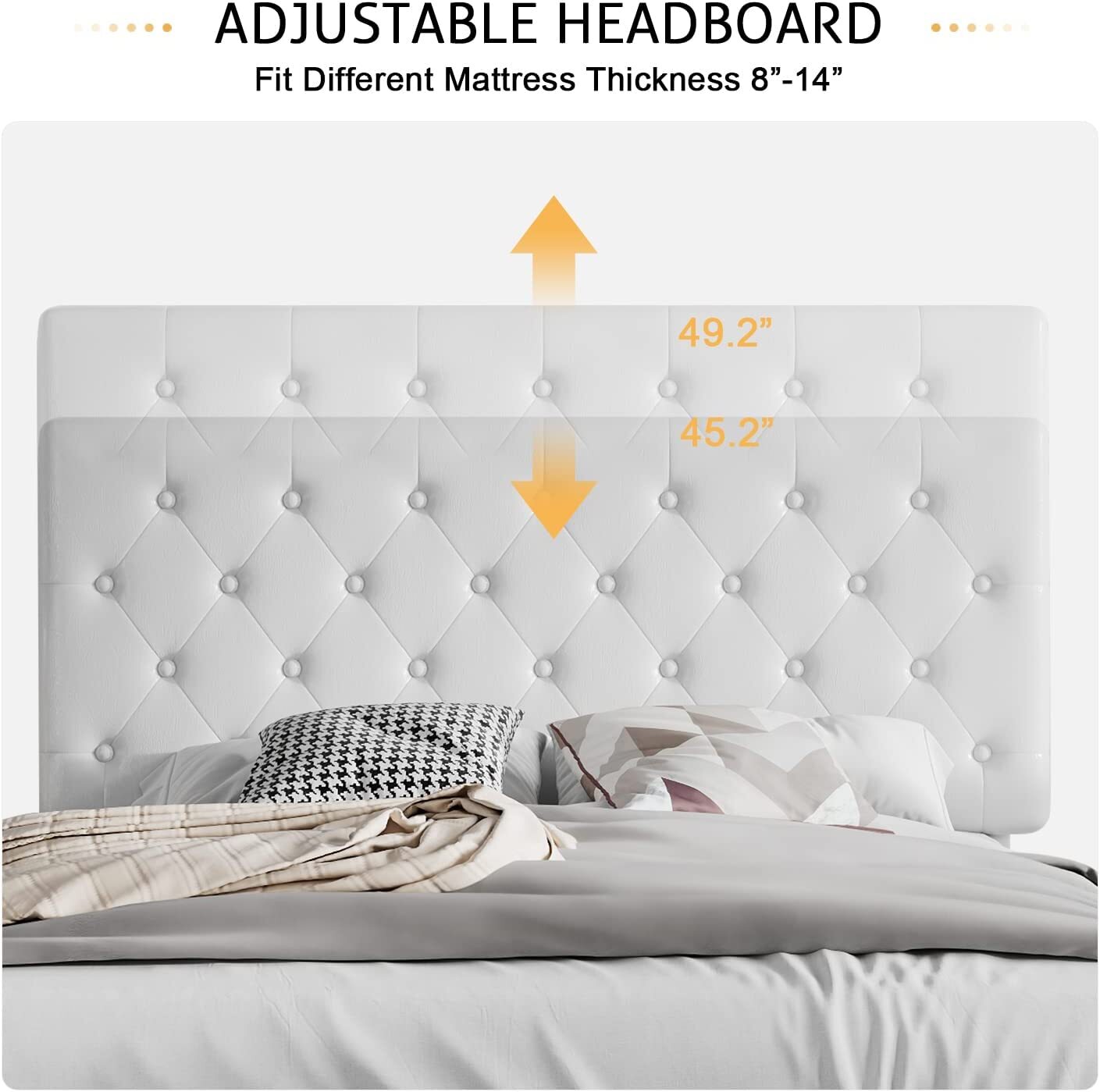 Full Size Faux Leather Platform Bed Frame with Button Tufted Headboard, White