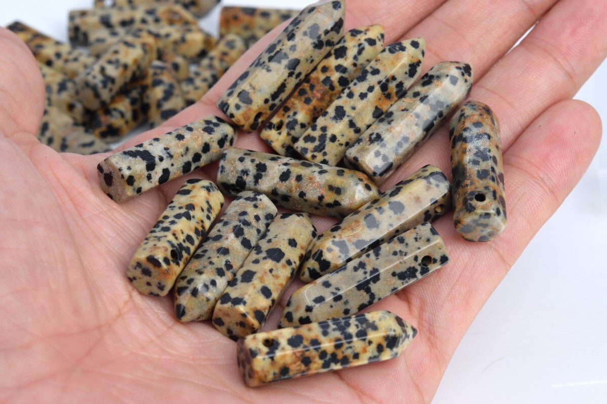 2 Pcs 30x8MM Dalmatian Jasper Healing Hexagonal Pointed AAA Natural Beads