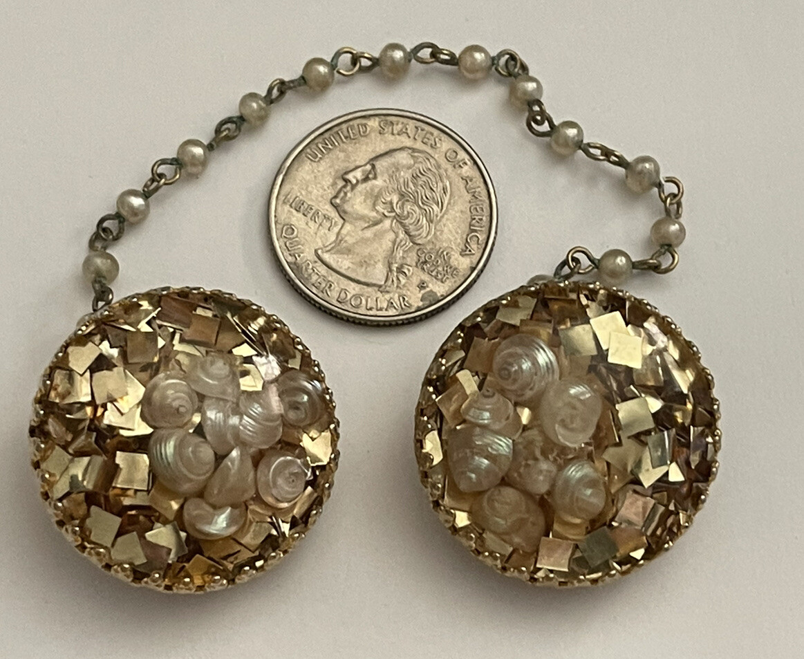 Vintage Mid Century Seashells Under Round Lucite Done Sweater Clips
