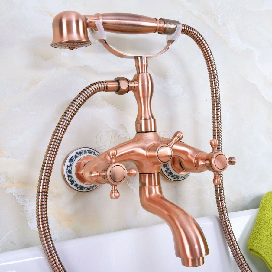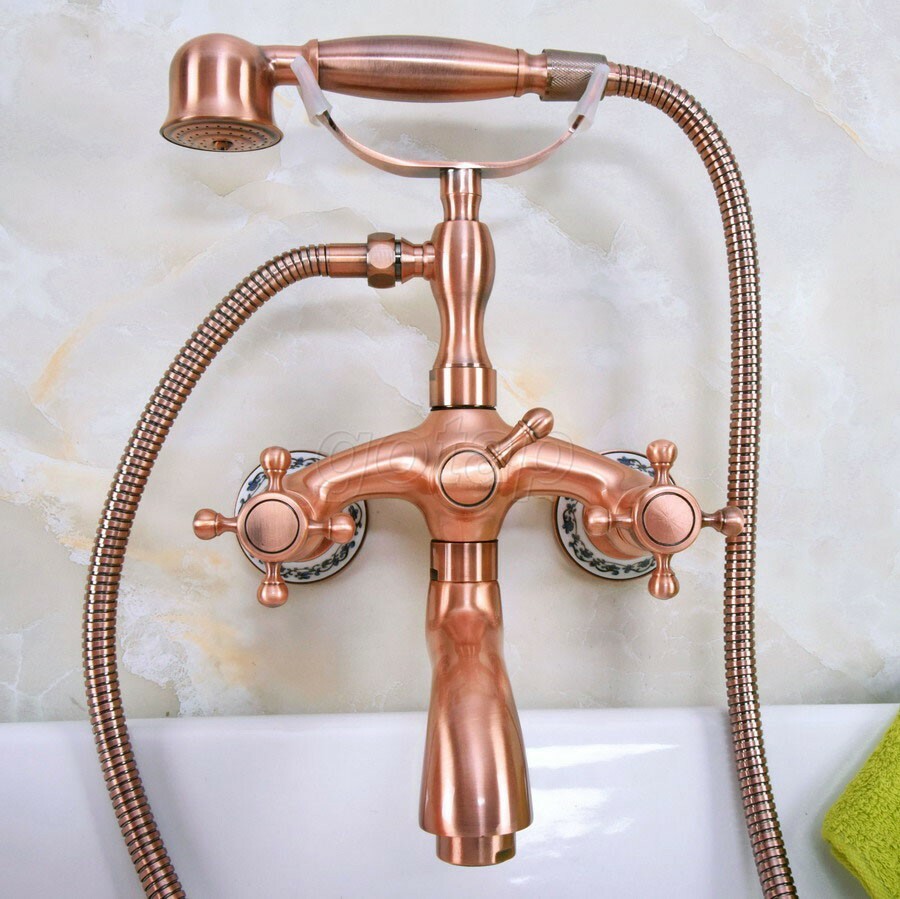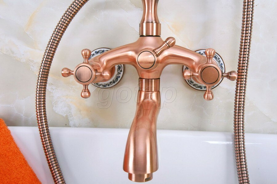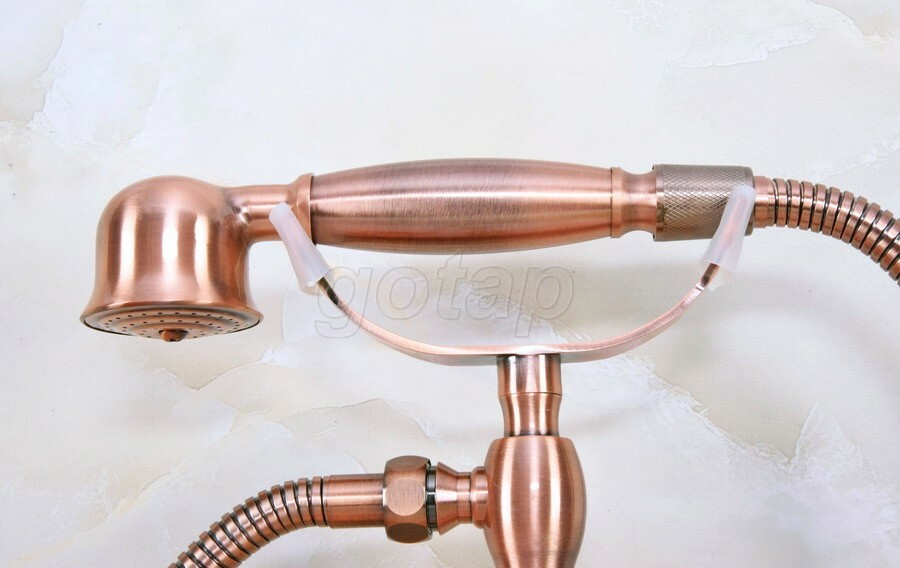 как выглядит Red Copper Clawfoot Bath Tub Faucet with Hand Shower Mixer Tap Wall Mount Gna324 фото