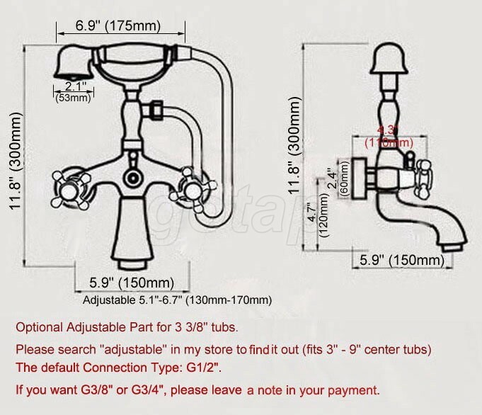 Red Copper Clawfoot Bath Tub Faucet with Hand Shower Mixer Tap Wall Mount Gna324