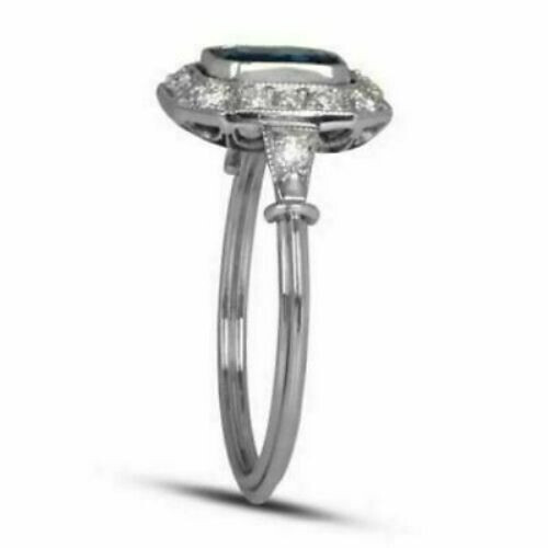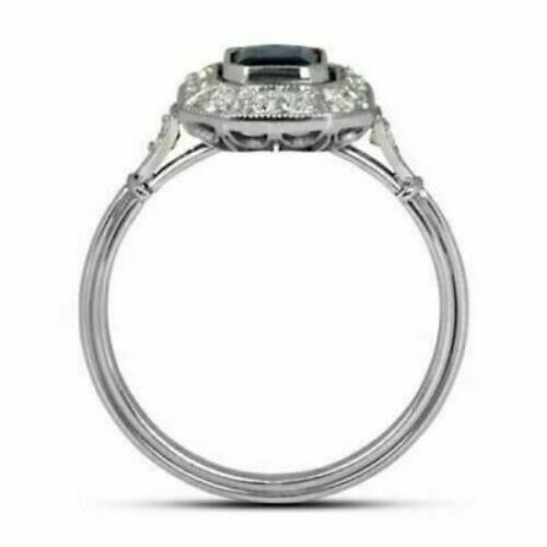 как выглядит Art Deco Style 1 Ct Blue Emerald Cut Sapphire CZ Halo Engagement Ring 925 Silver фото