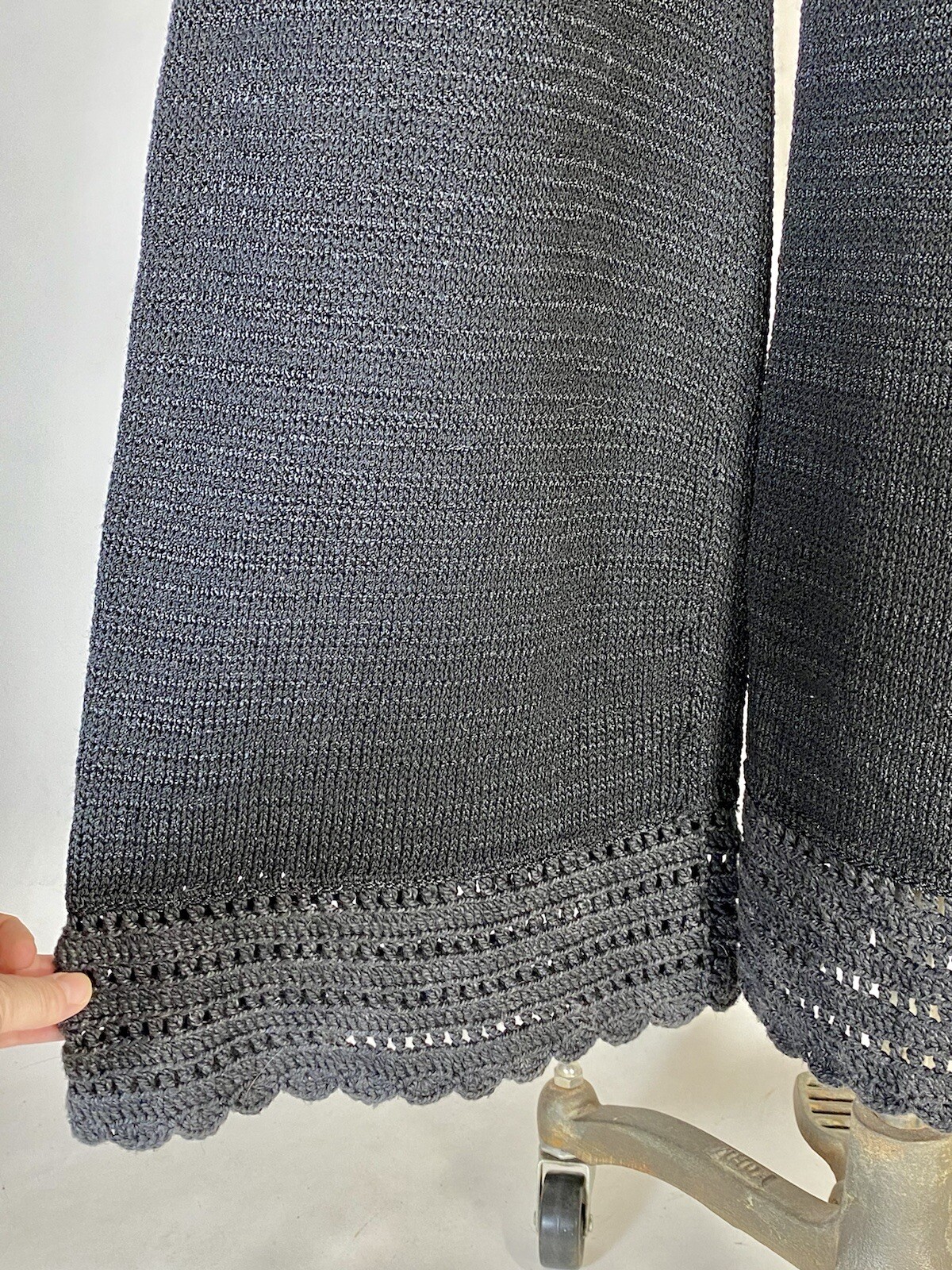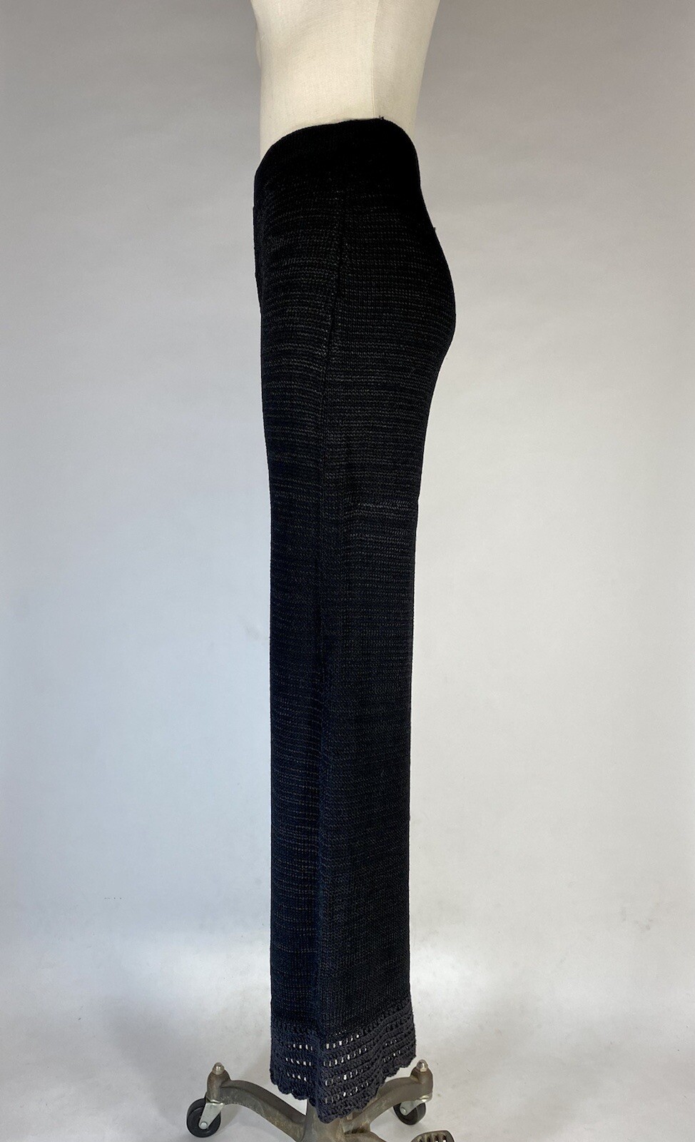 Vintage 1970's Handmade Black CROCHET wide leg palazzo style bell bottom pants S
