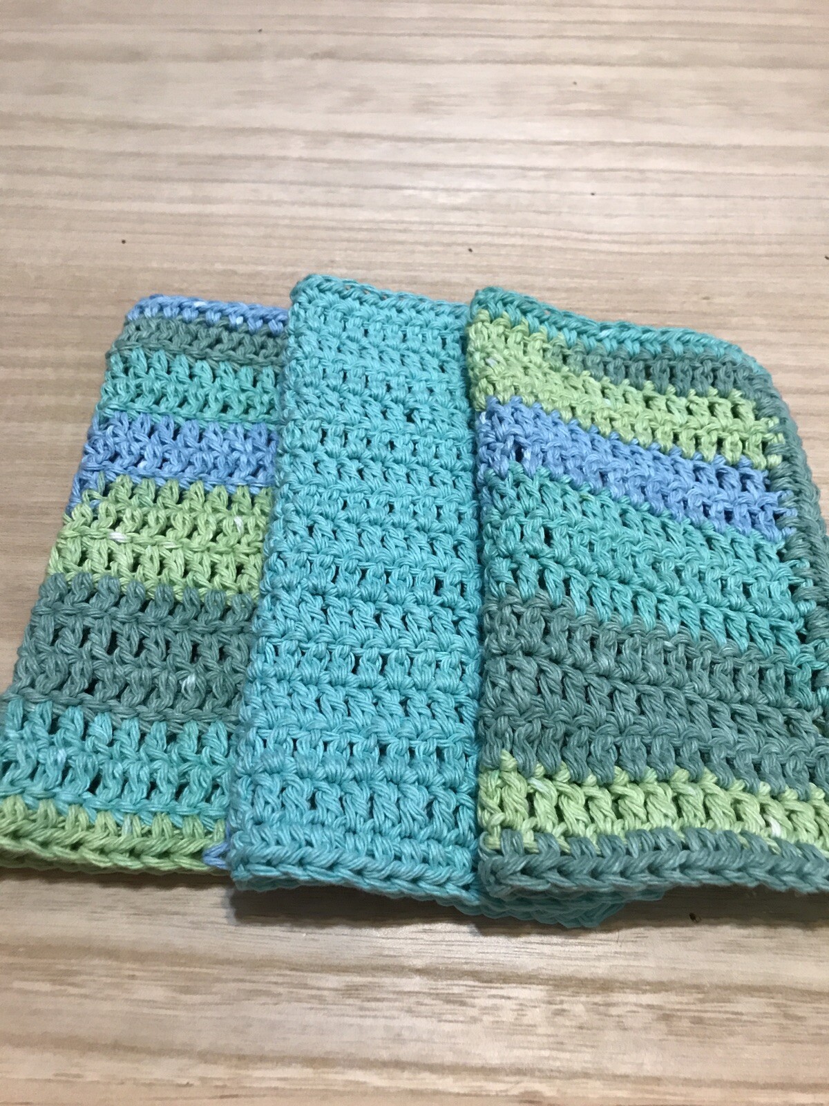 HANDMADE SET OF 3 CROCHET COTTON DISH CLOTHS OR WASH CLOTHS 8.5x8.5 INCHES NEW