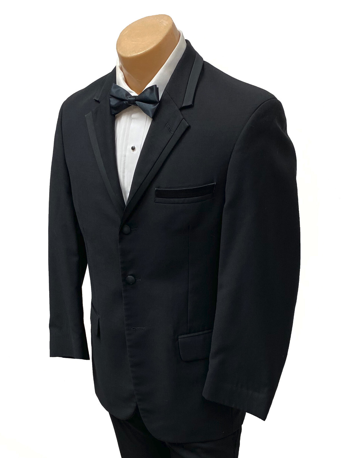 как выглядит Boys Size 4 Calvin Klein Black Tuxedo Jacket Three Button Satin Trimmed Lapels фото