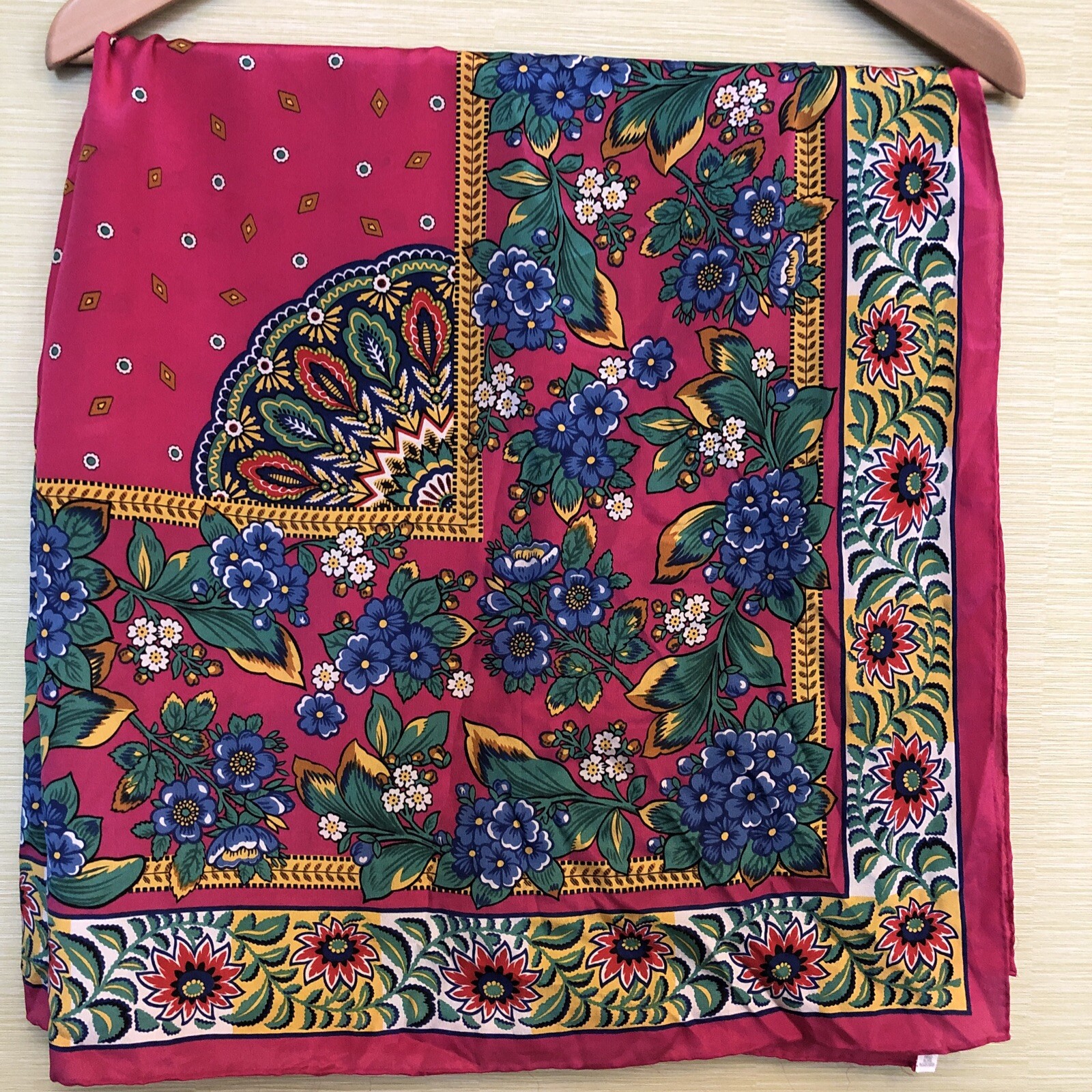 как выглядит Vintage Echo Silk Scarf Flower Garden Floral Pinks Greens Rolled Hem 34"x34" фото