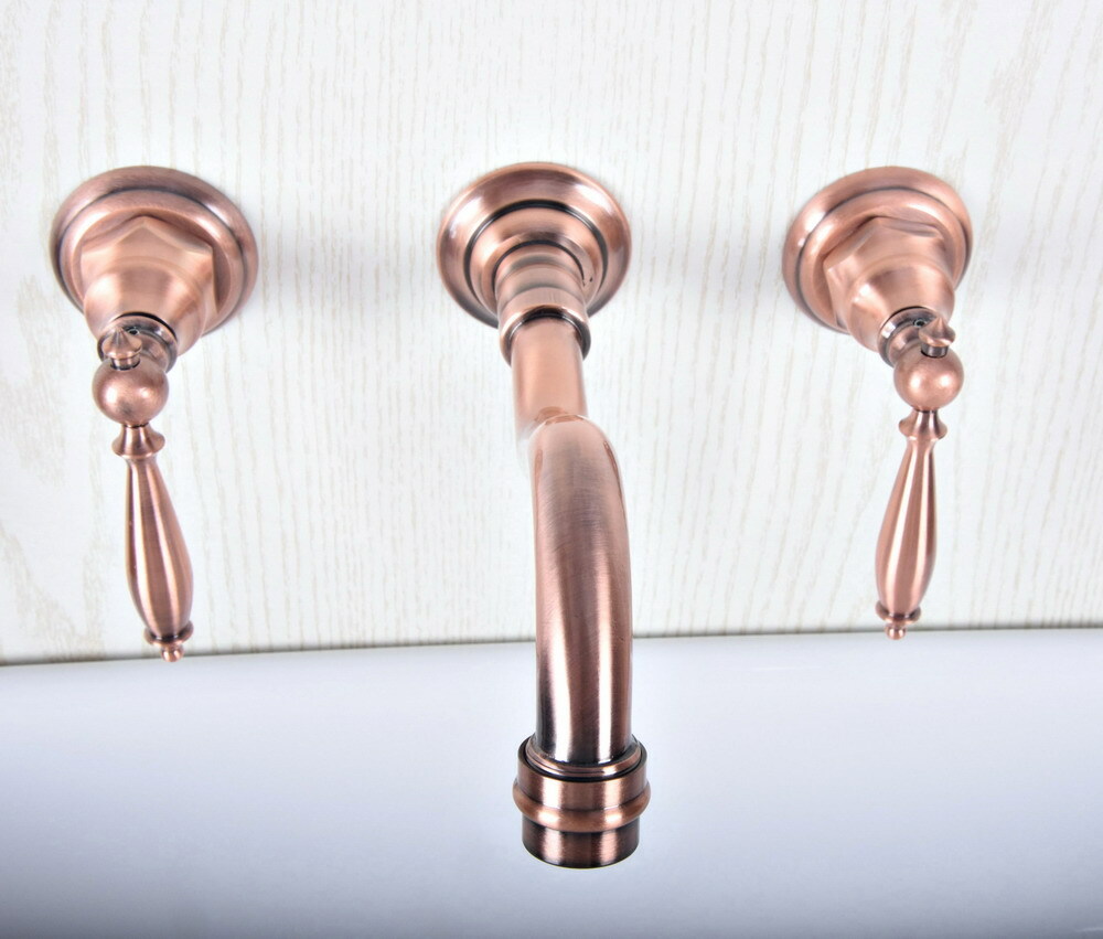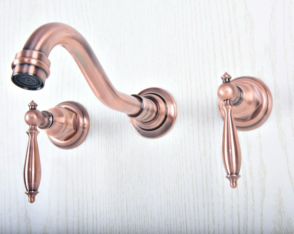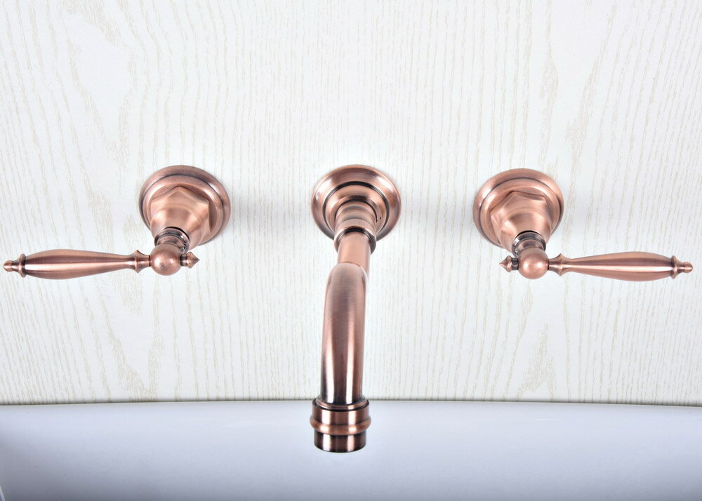 Antique Red Copper Widespread Bathroom Sink Faucet Mixer Tap 3 Holes Wall-Mount