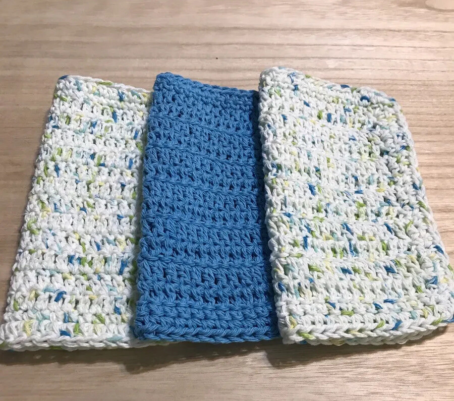 HANDMADE SET OF 3 CROCHET COTTON DISH CLOTHS OR WASH CLOTHS 8.5x8.5 INCHES NEW