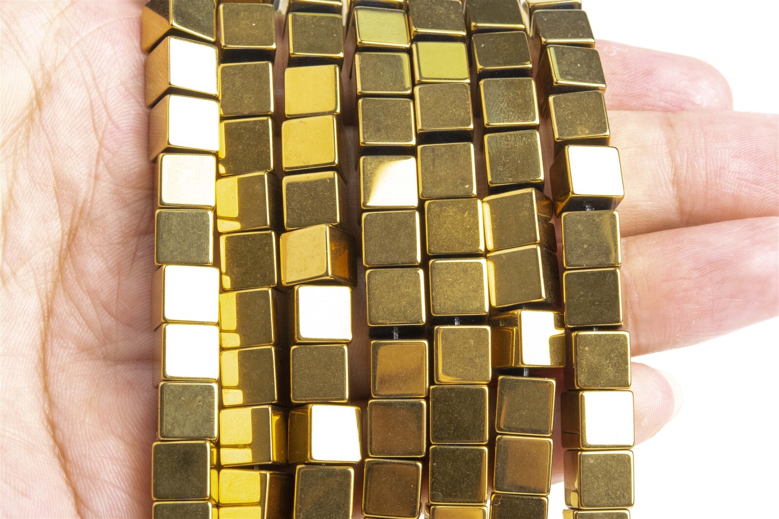 Gold Tone Hematite Cube Gemstone Loose Beads 1/2/6/7-8/10MM