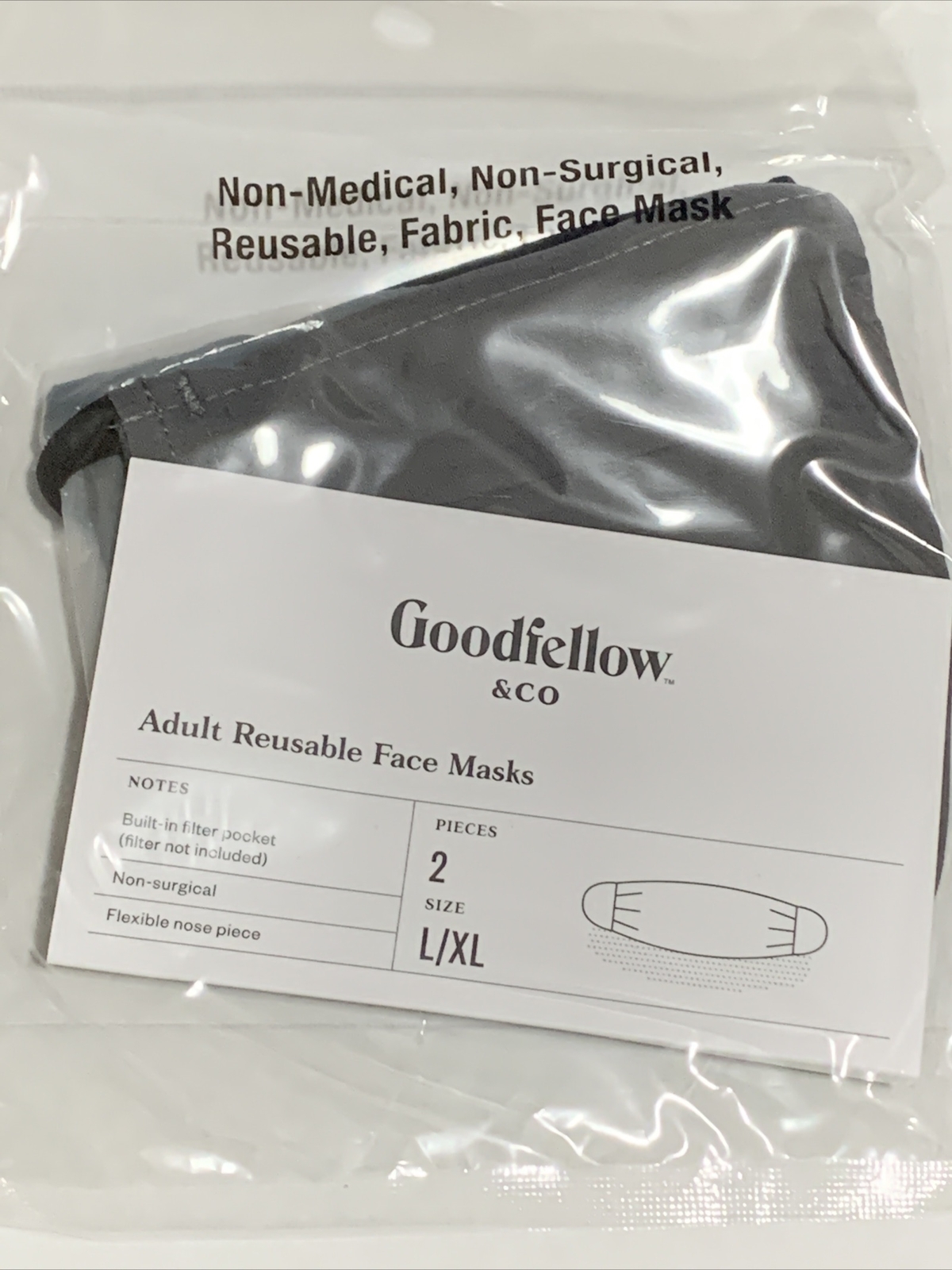 2 pcs Goodfellow Co Men's Fabric Face Masks Black Gray Size L / XL Brand New