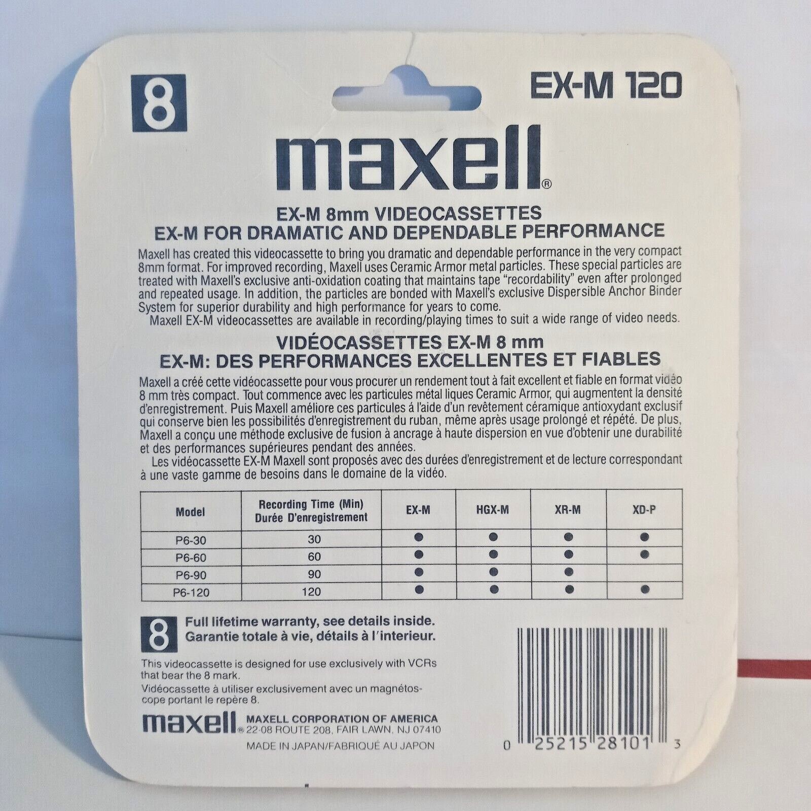 MAXELL EX-M 120 Metal 2 Videocassette Tape 8mm Blank Japan P6-120EX - NEW