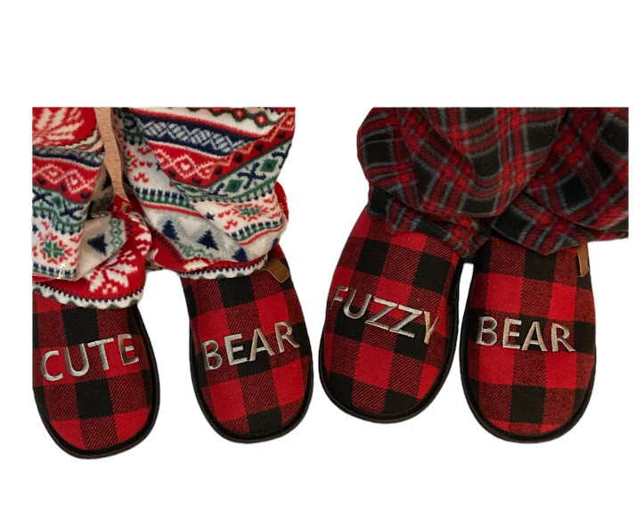 Women s Cute Bear Plaid Slippers 7/8 Medium New In Bag Indoor Outdoor Sole