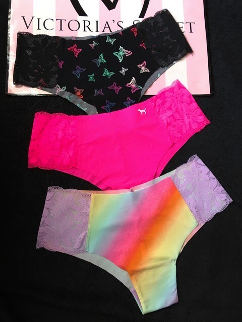 как выглядит NWT Victorias Secret PINK No-Show Seamless Cheekster Panties -LOT OF 3-Rainbow M фото