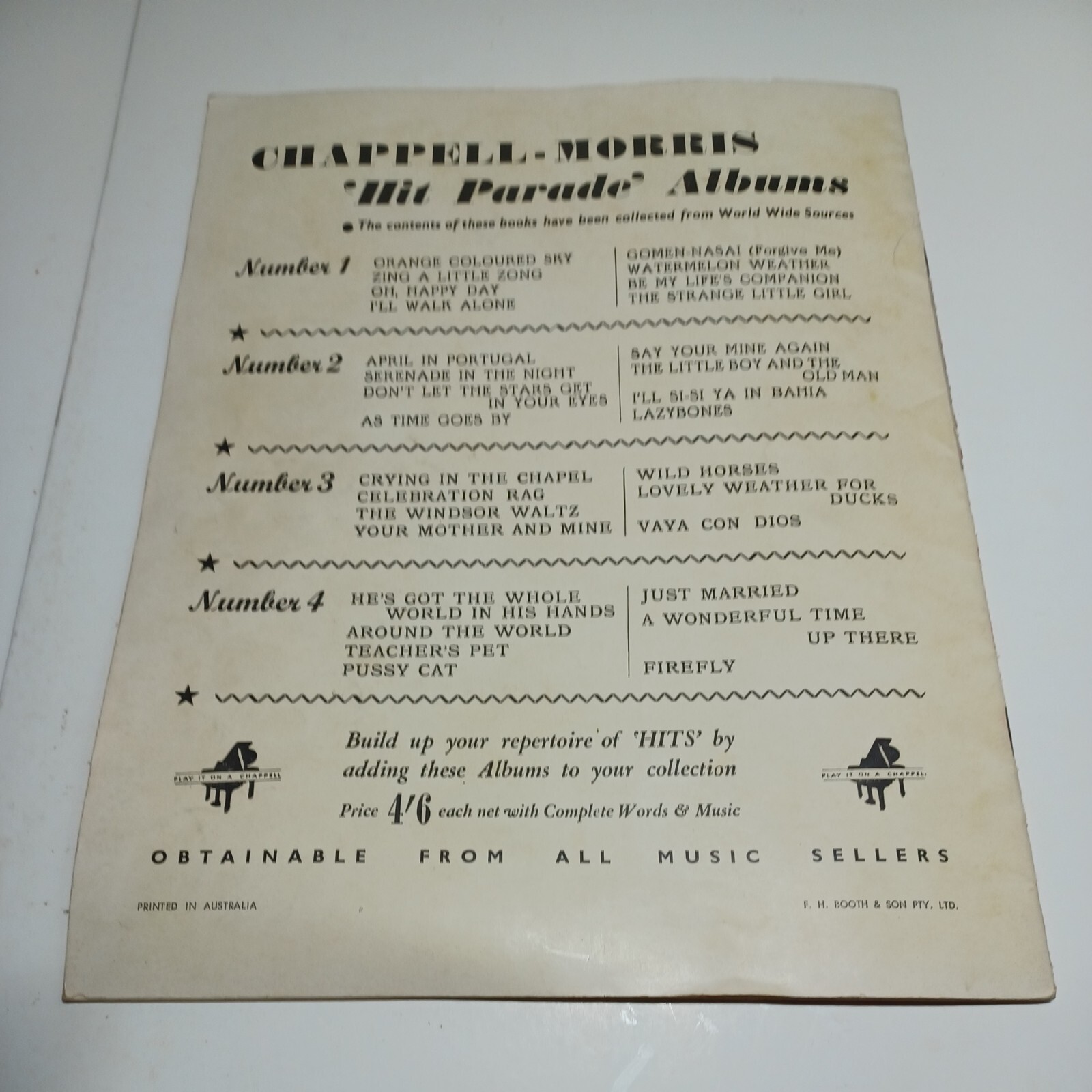 Chappell Morris Hit Parade Album Number 4 Vintage Sheet Music