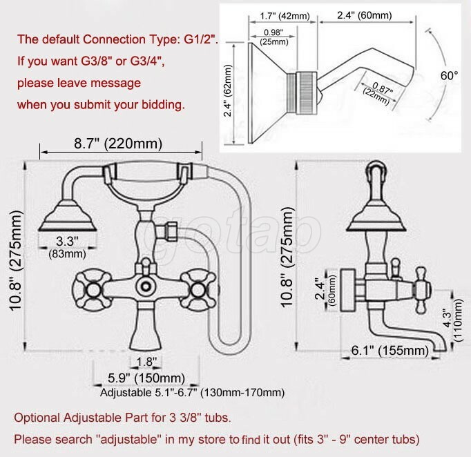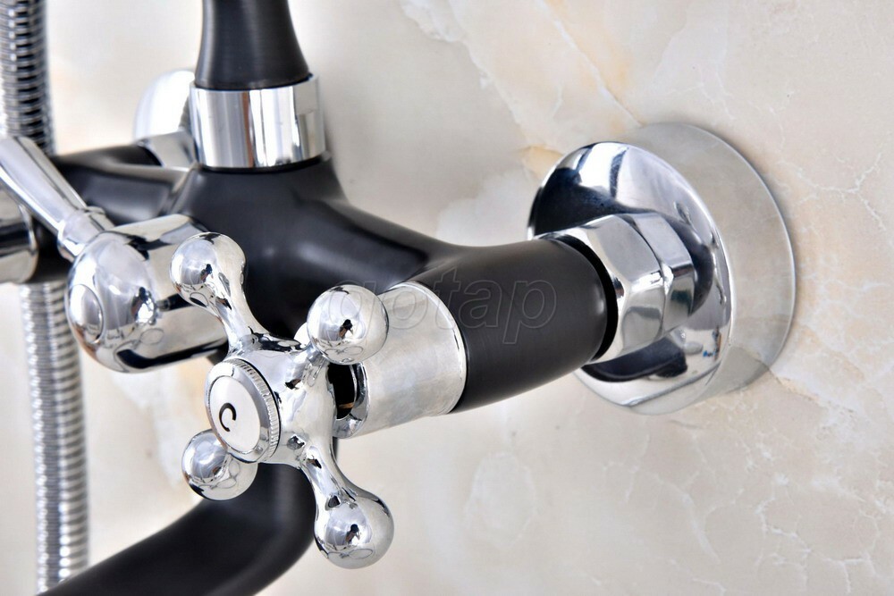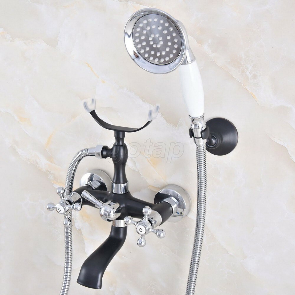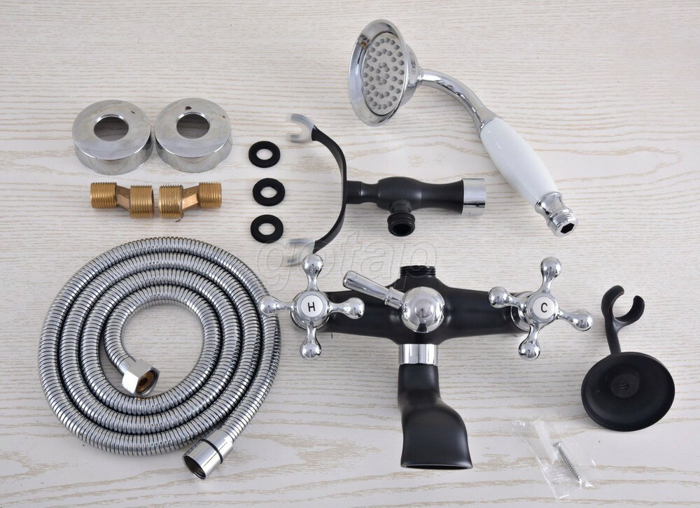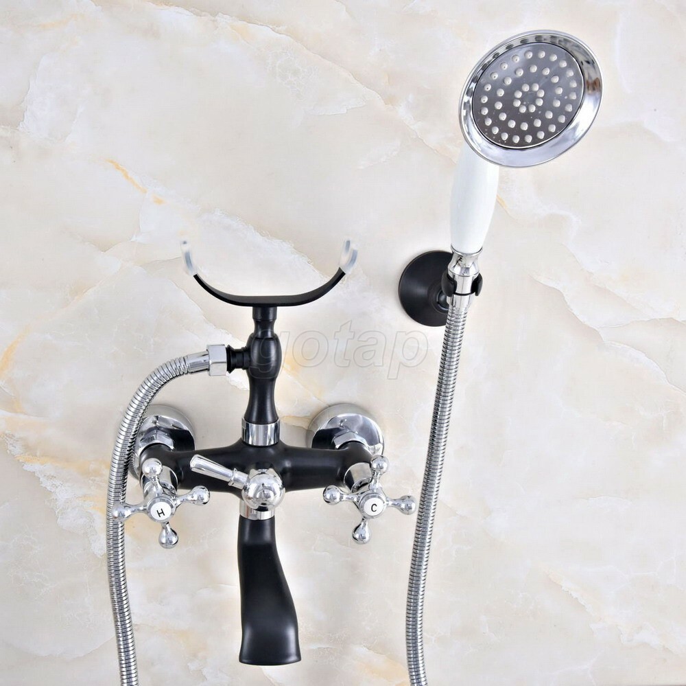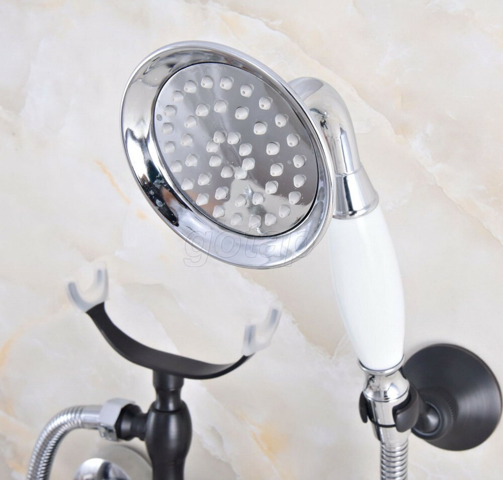 Black Chrome Claw-foot Bathtub Faucet Wall Mounted Tub Faucet Handheld Shower