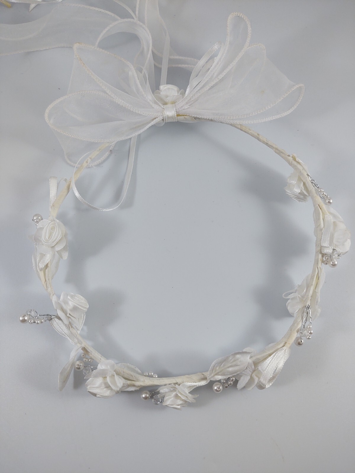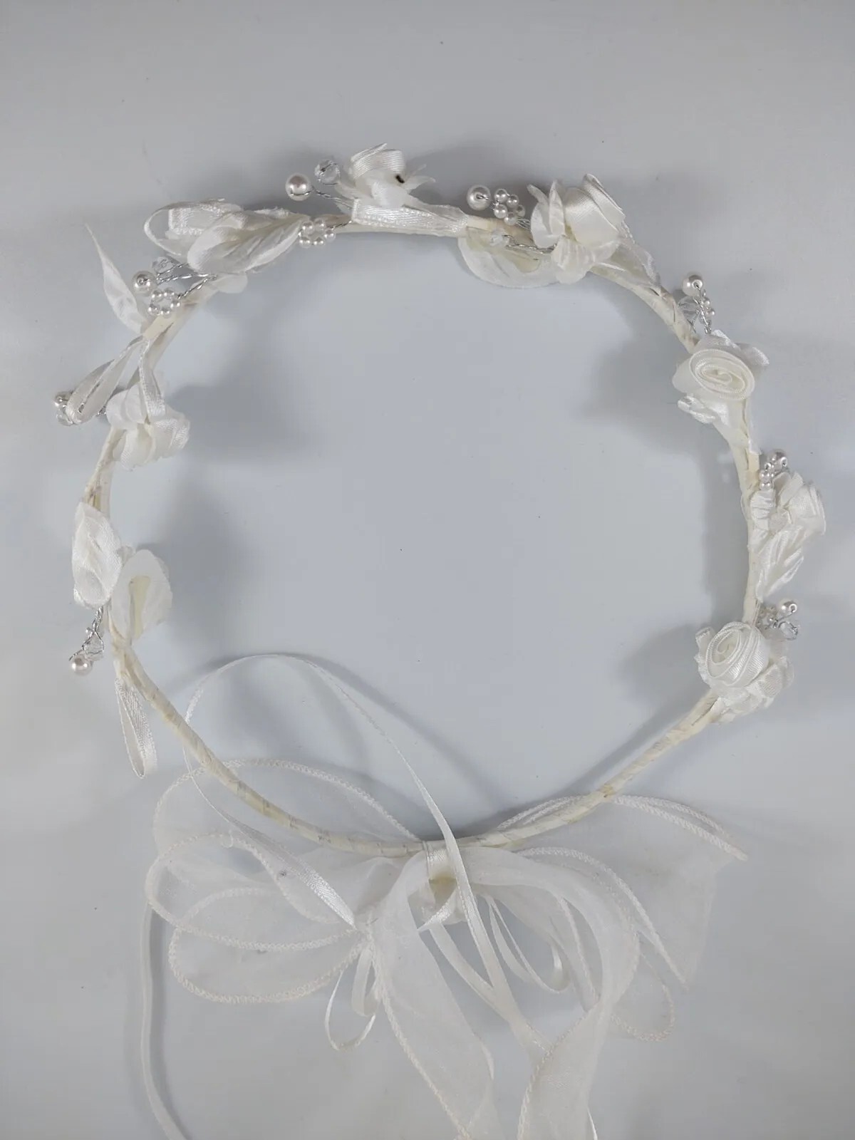 Flower Girl/First Communion/ Wedding Bridal - 6in White Beaded/Floral Vale - B18