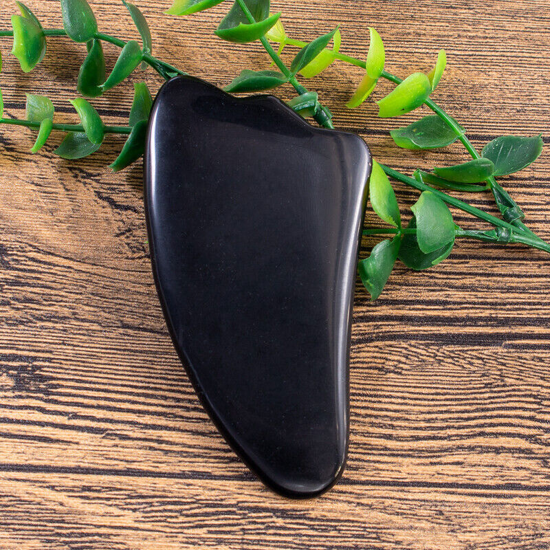 Natural Black obsidia stone Gua sha Jade Guasha Body Facial Eye Massage Tool 1PC