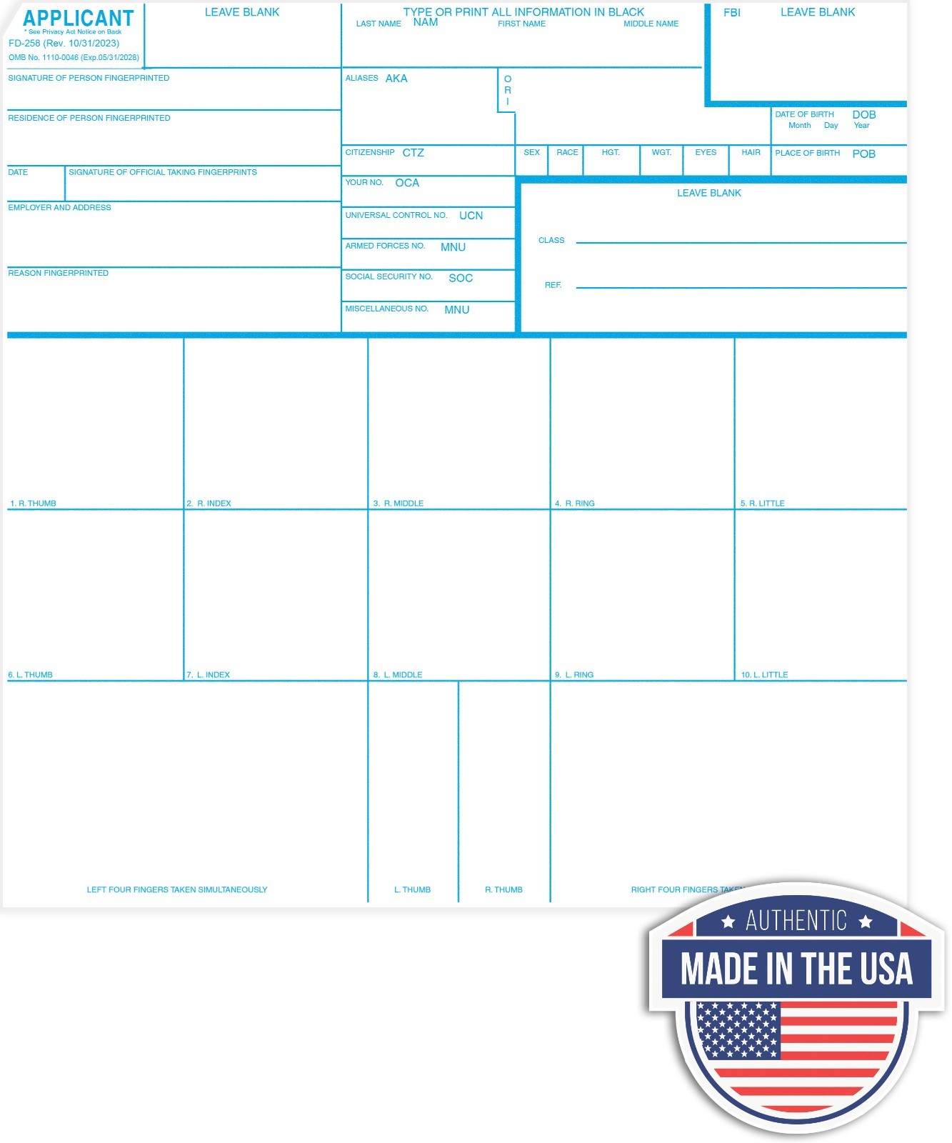 Deluxe FD-258 Fingerprinting Kit, Retabs, fd 258 applicant cards, ink, tactical