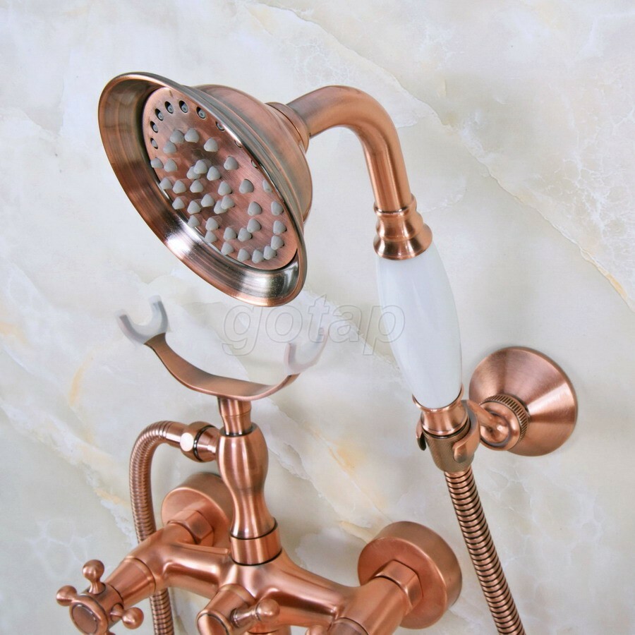 как выглядит Red Copper Wall Mount Clawfoot Bath Tub Shower Faucet Sets w/ Handheld Shower фото