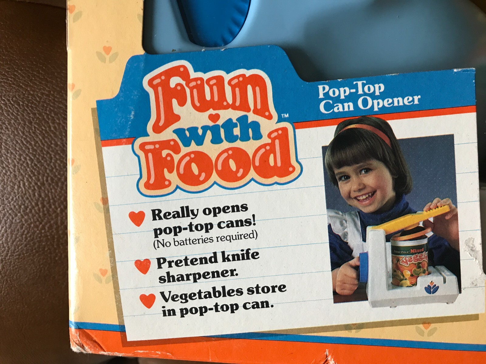 FISHER PRICE PLAY FOOD CAN OPENER SET VEGS SOUNDS NEW BOX 2112 EXC RARE 1987