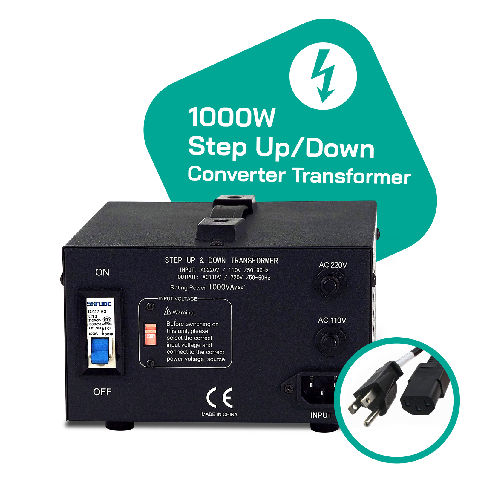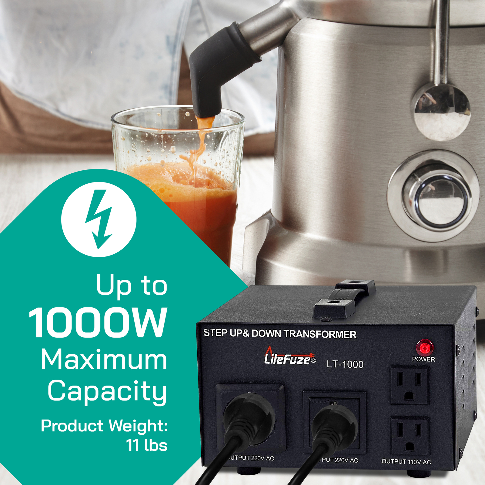 LiteFuze LT-1000 1000 Watt Heavy Duty Voltage Converter Transformer