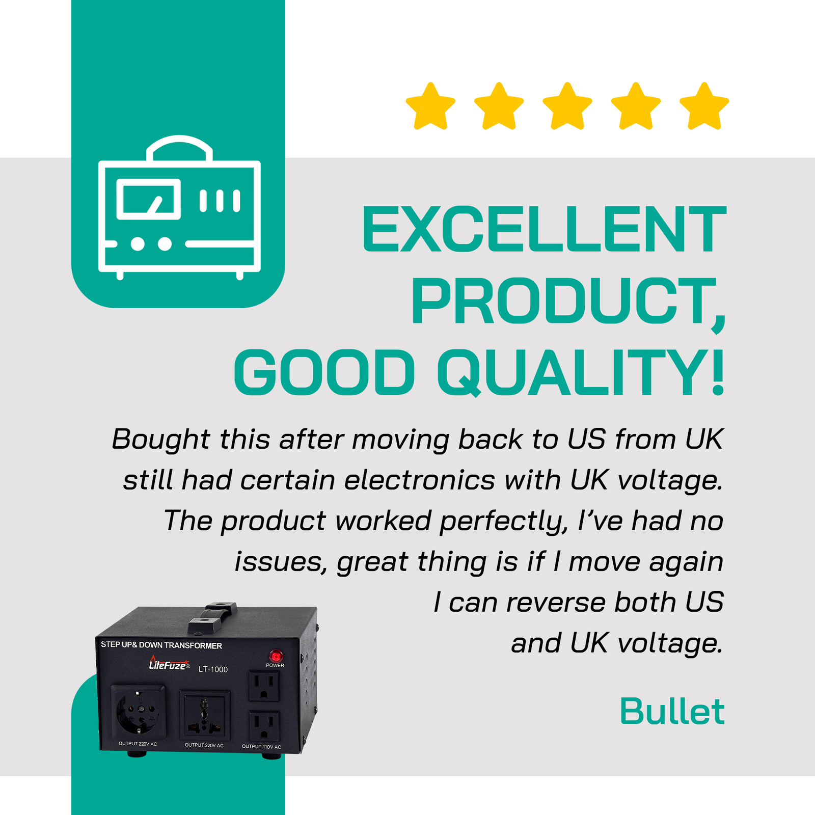 как выглядит LiteFuze LT-1000 1000 Watt Heavy Duty Voltage Converter Transformer фото