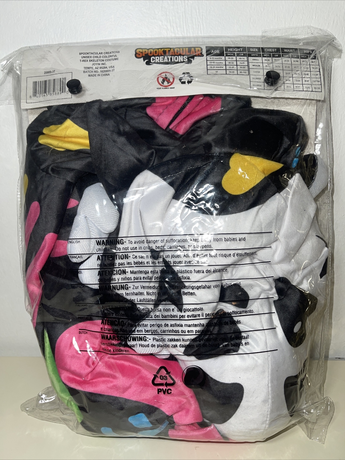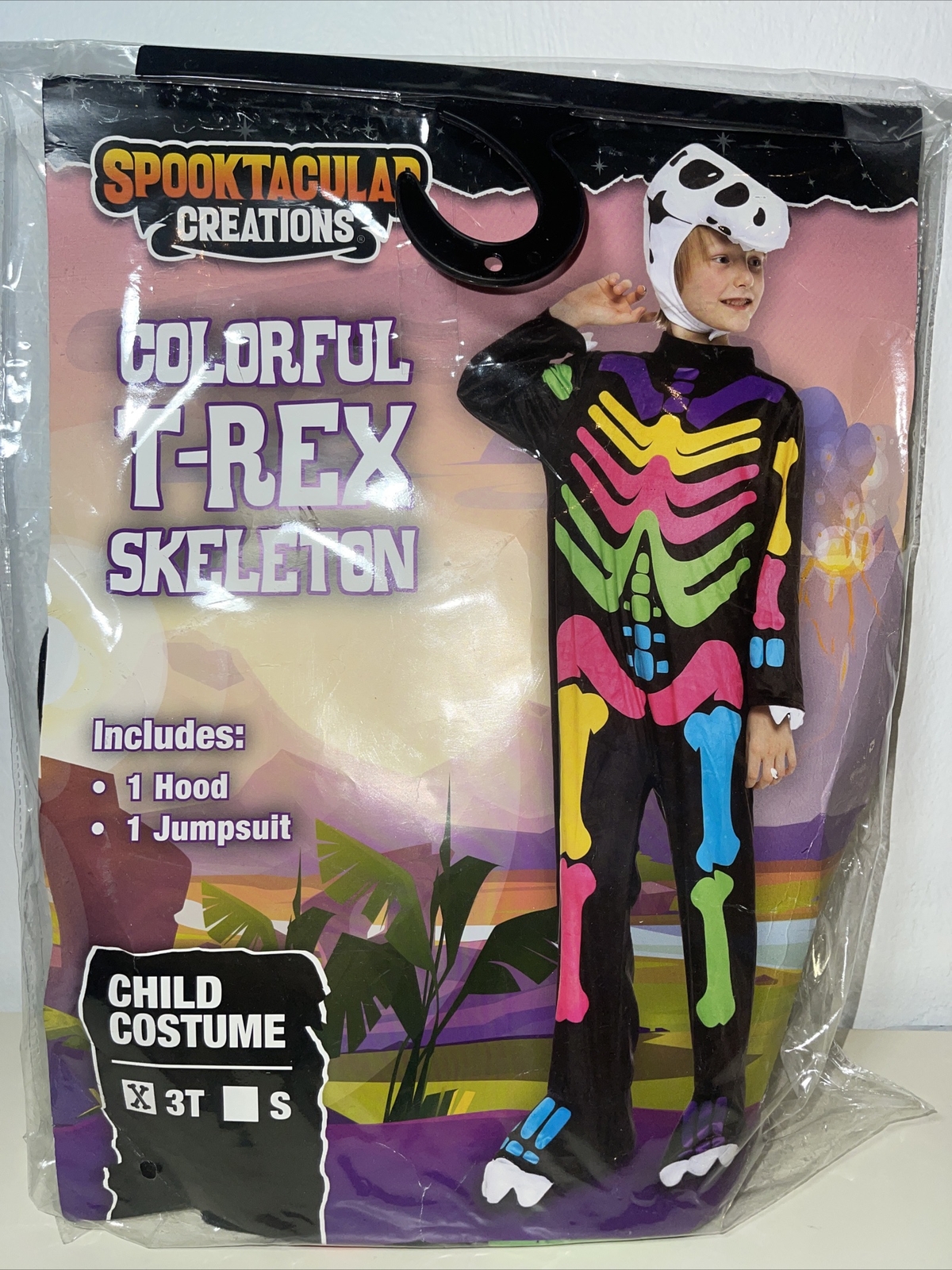 Child Boys Funky Colorful T-rex Dinosaur Skeleton Child Boys Costume 3T 3-4yr