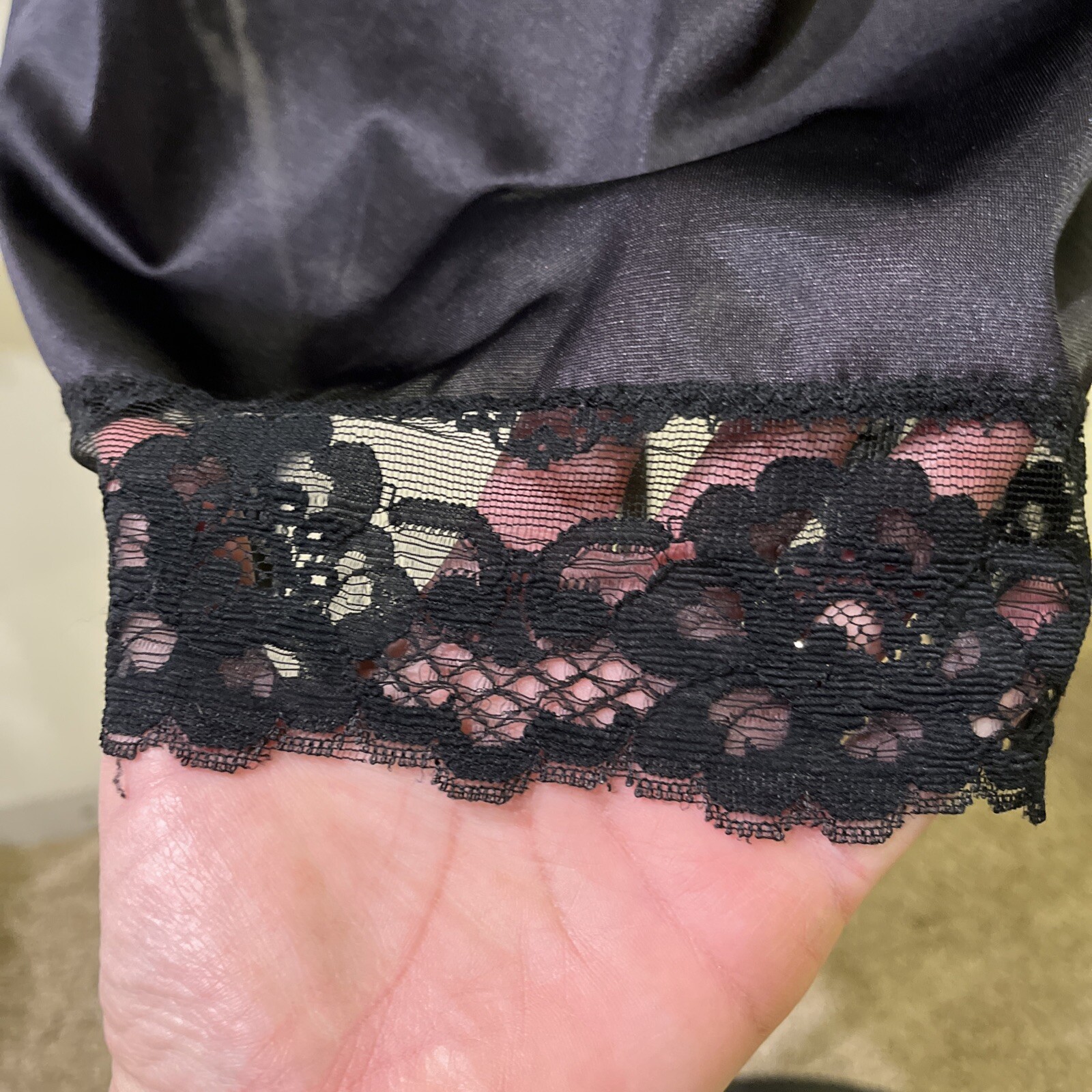 как выглядит Velrose Lingerie Black Half Slip Size Medium Pretty Lace Hem And Side Slit 24 In фото