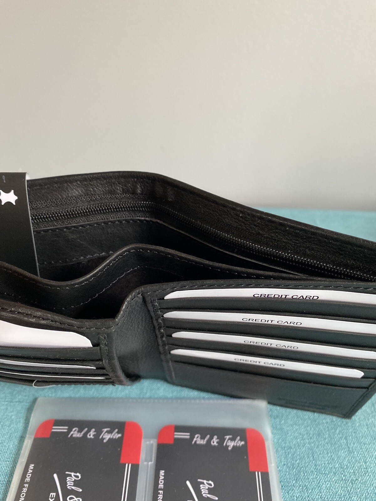 Men's Genuine Leather Bifold Wallet Slim Hipster Cowhide Credit Card and one ID