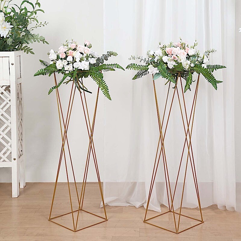 2 Gold 32 in Crisscross Geometric Metal FLOWER STANDS Centerpieces Party Events
