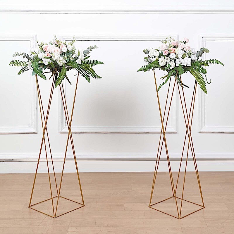 как выглядит 2 Gold 32 in Crisscross Geometric Metal FLOWER STANDS Centerpieces Party Events фото