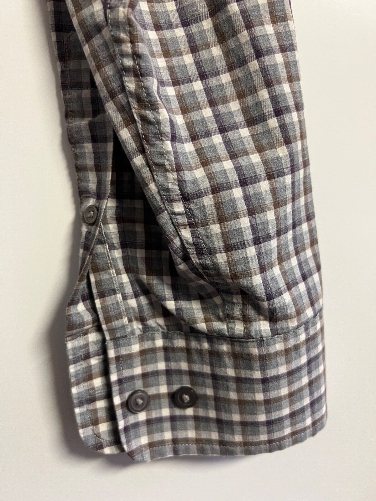 Banana Republic Mens Button Down Dress Shirt 100 Cotton Large Gray/White/Brown