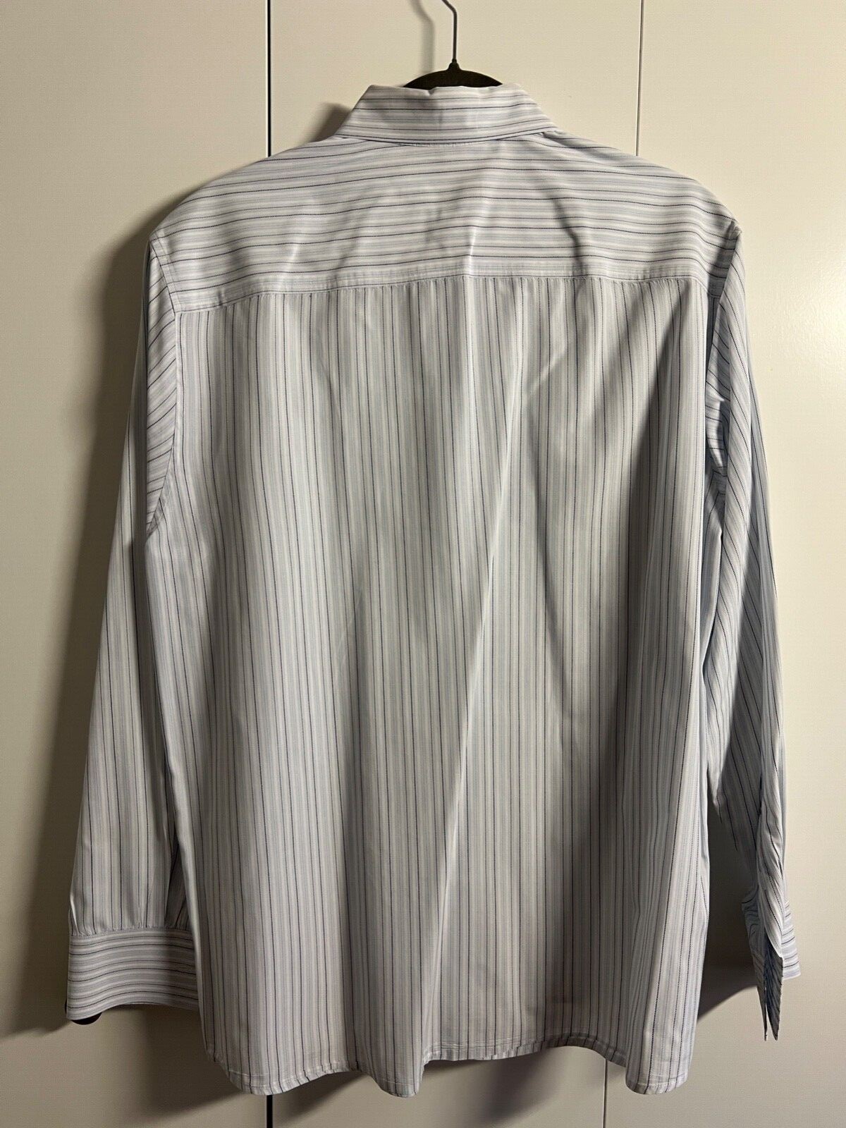 как выглядит Calvin Klein Mens Long Sleeve Dress Shirt 100 Cotton LG Blue w/Colored Stripes фото