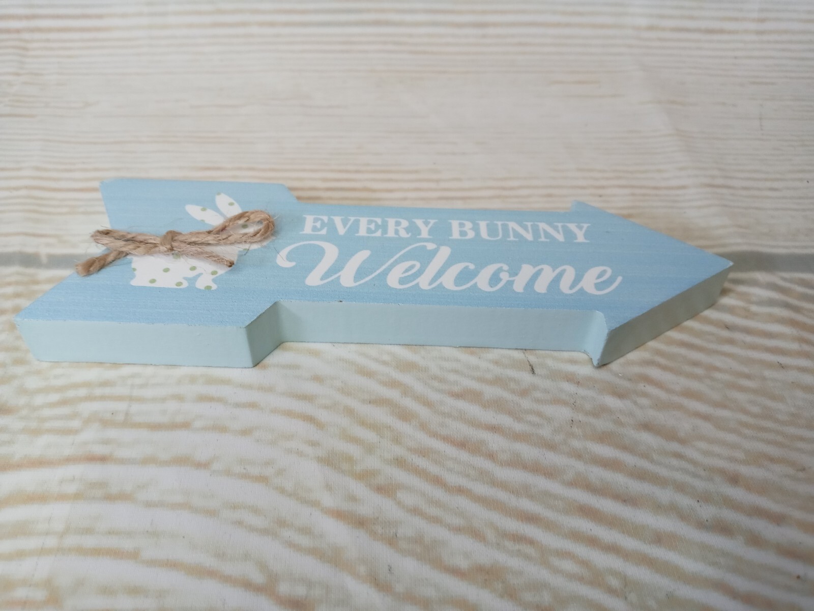 Subject: "Every Bunny Welcome" Easter Arrow Wood Sign Decor Spring