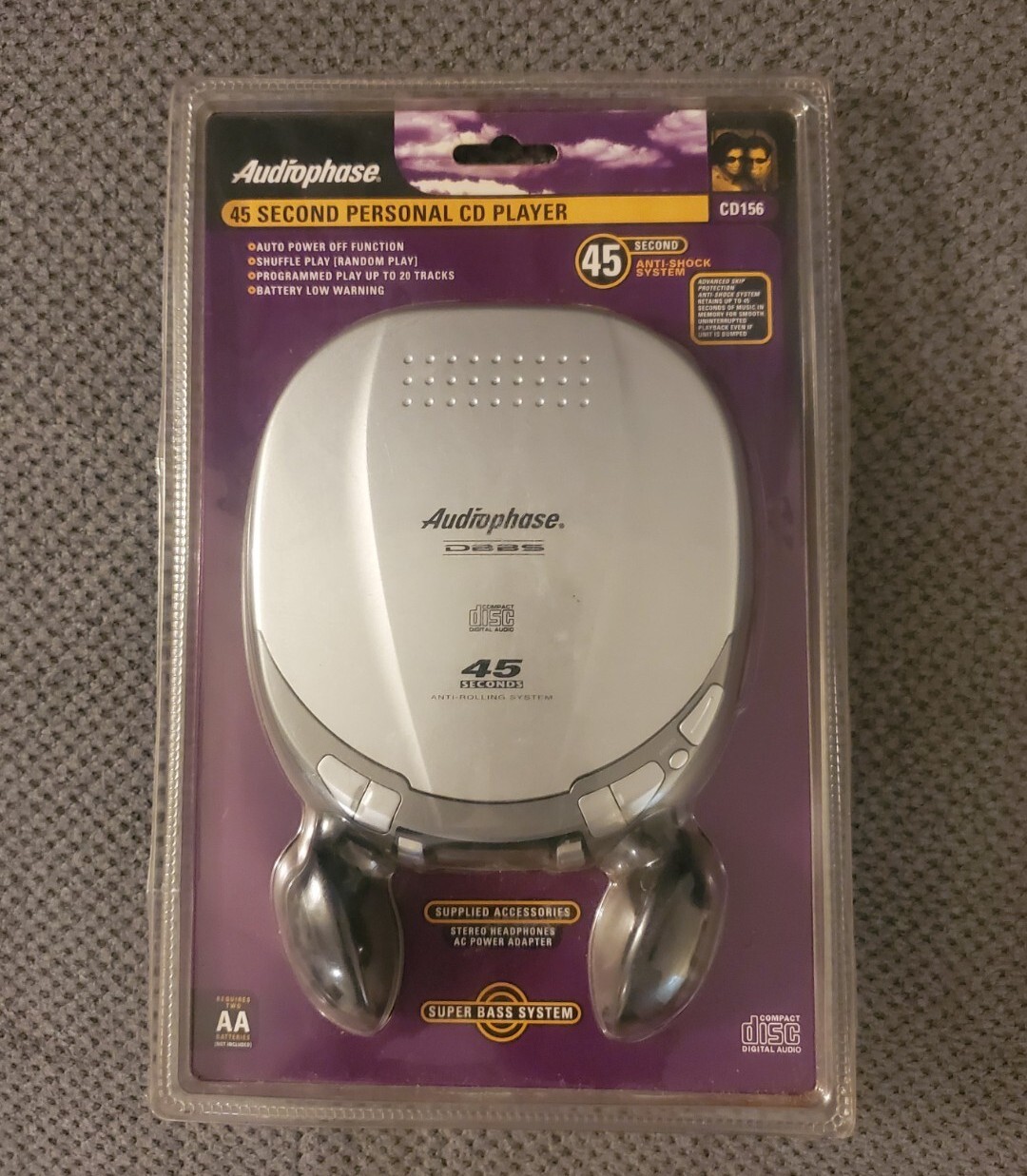 2000 AUDIOPHASE CD156 ANTI-SHOCK PERSONAL CD PLAYER W HEADPHONES VINTAGE SEALED