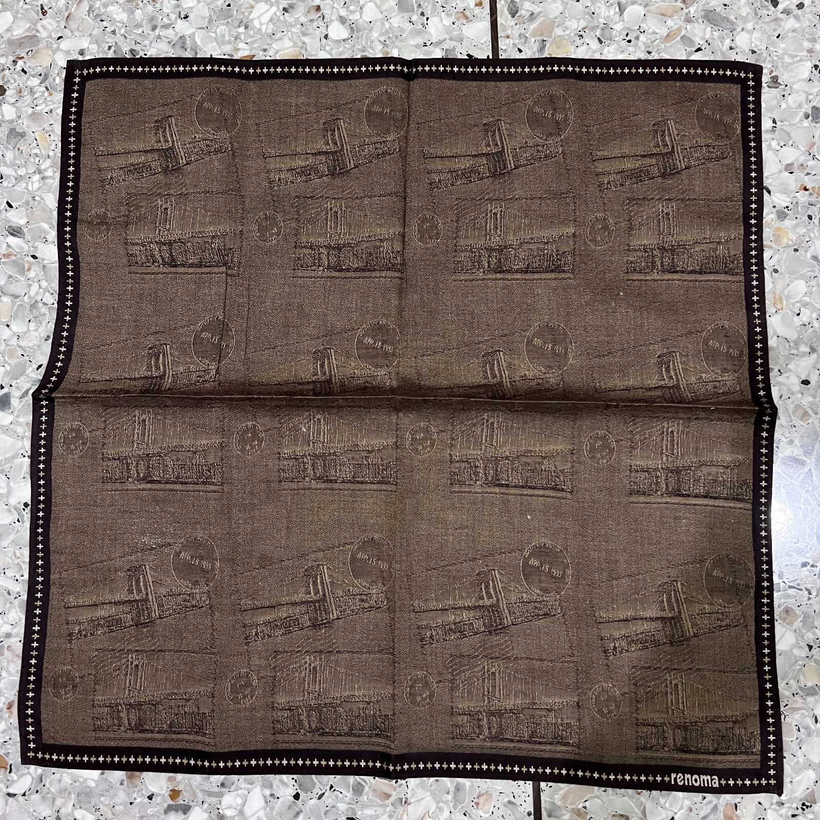 BROWN WOODEN BRIDGE SCENE ART HANKY CLASSIC VINTAGE COTTON MEN POCKET SQUARE 18