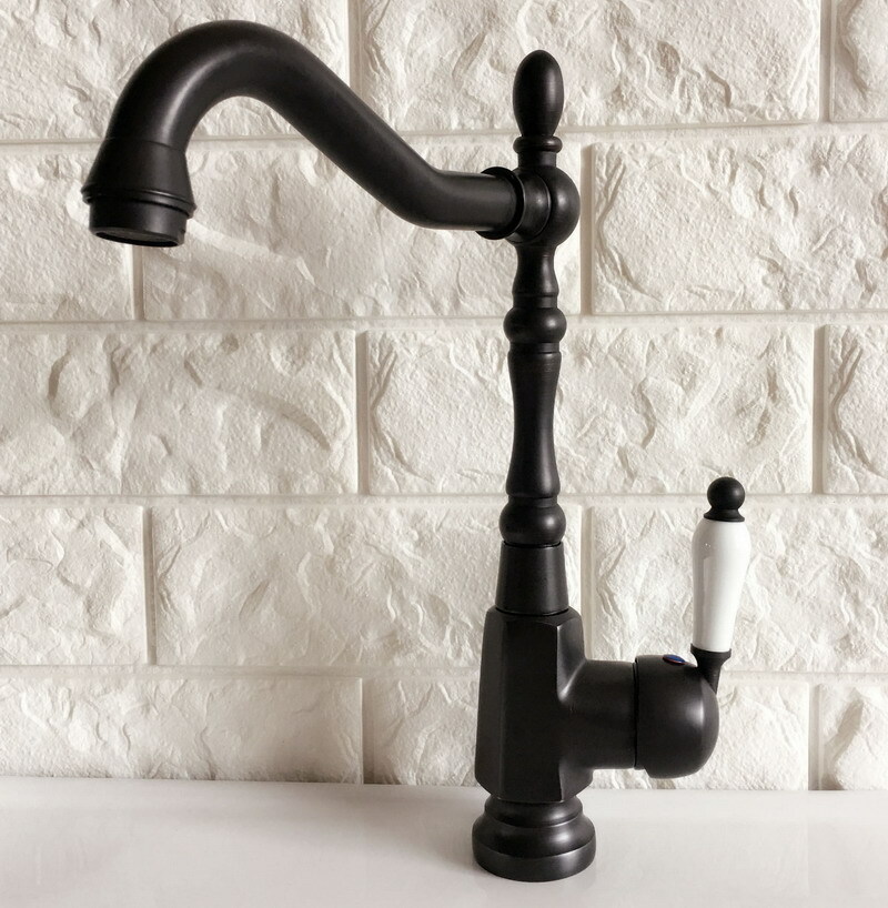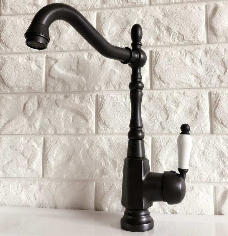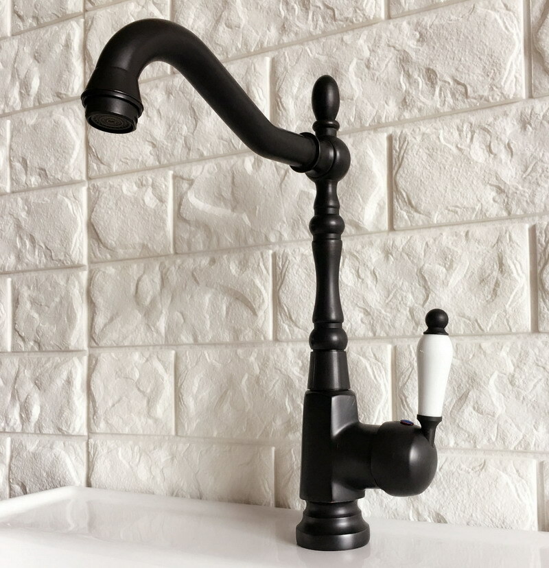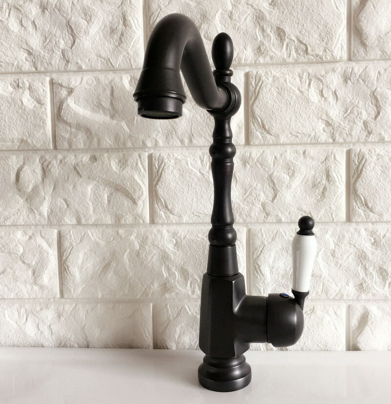 Black Kitchen Basin Faucet Swivel Spout Deck Mount 1 Handle/Hole Sink Mixer Taps