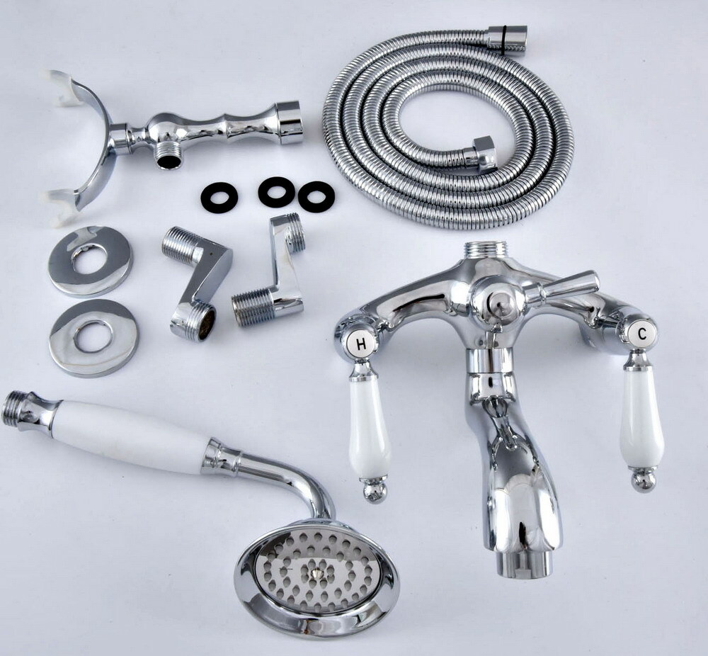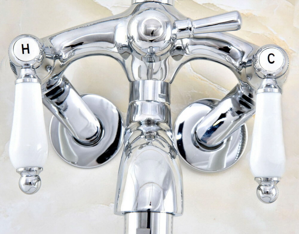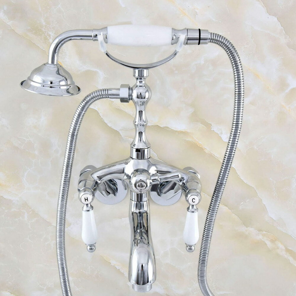 Chrome Wall Mount Bathtub Clawfoot Tub Faucet W/ Hand Shower Adjustable 3 3/8