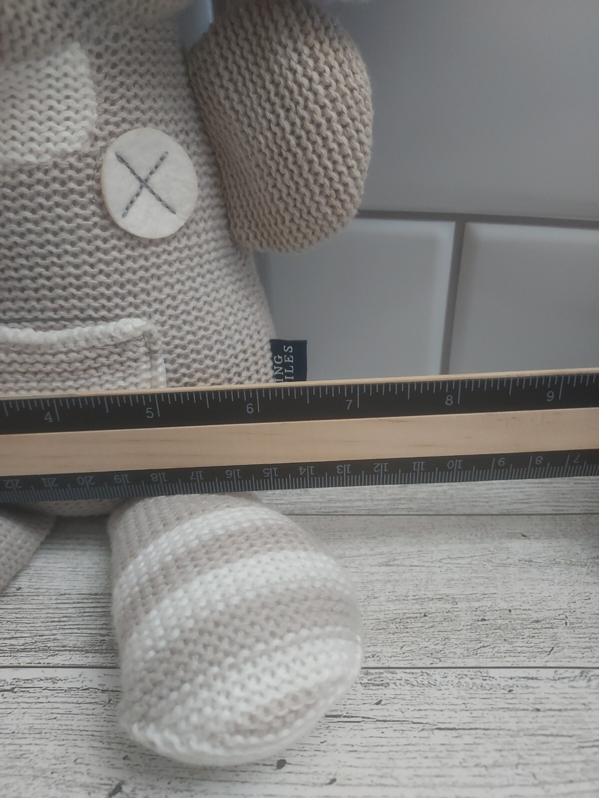 как выглядит Theodore Elephant 14" Living Textiles Knitted Gray Plush With Rattle 100 Cotton фото