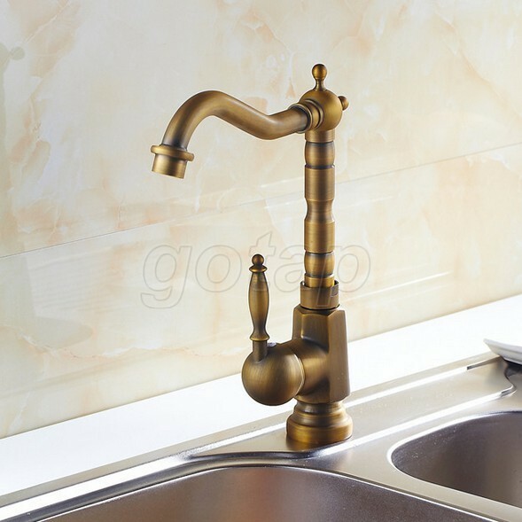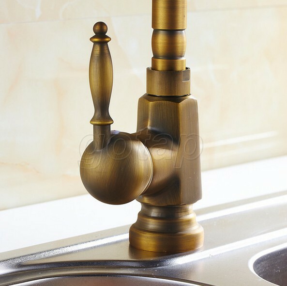 как выглядит Antique Brass Kitchen Vessel Sink Swivel Spout Mixer Water Tap Faucet Gan017 фото