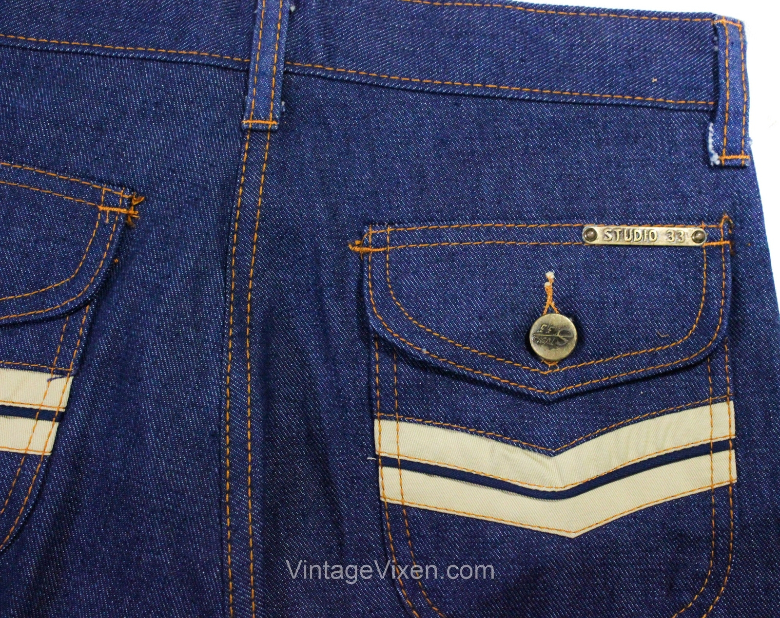 1970s Teen Girl's Jeans - Retro 70s Dark Blue Denim Pant - Size 14 NOS Studio 33