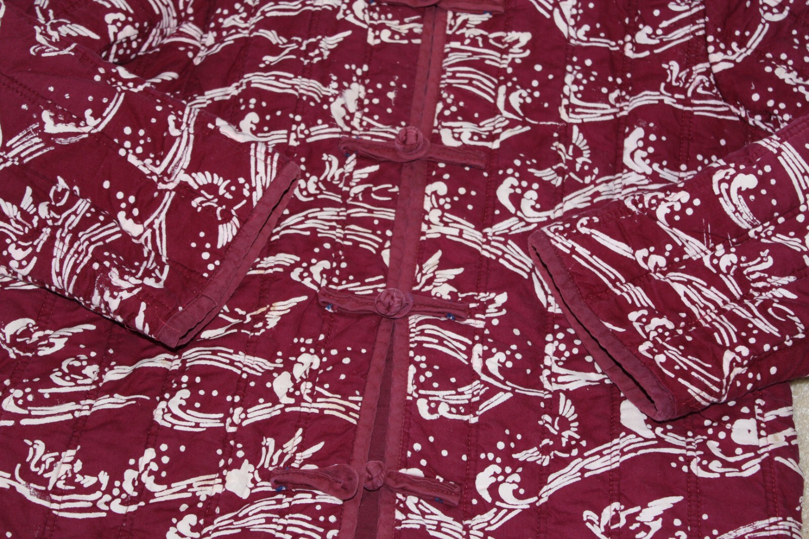 как выглядит Traditional Chinese Vintage Padded Jacket Dyed Red Burgundy Birds Womens M-L фото