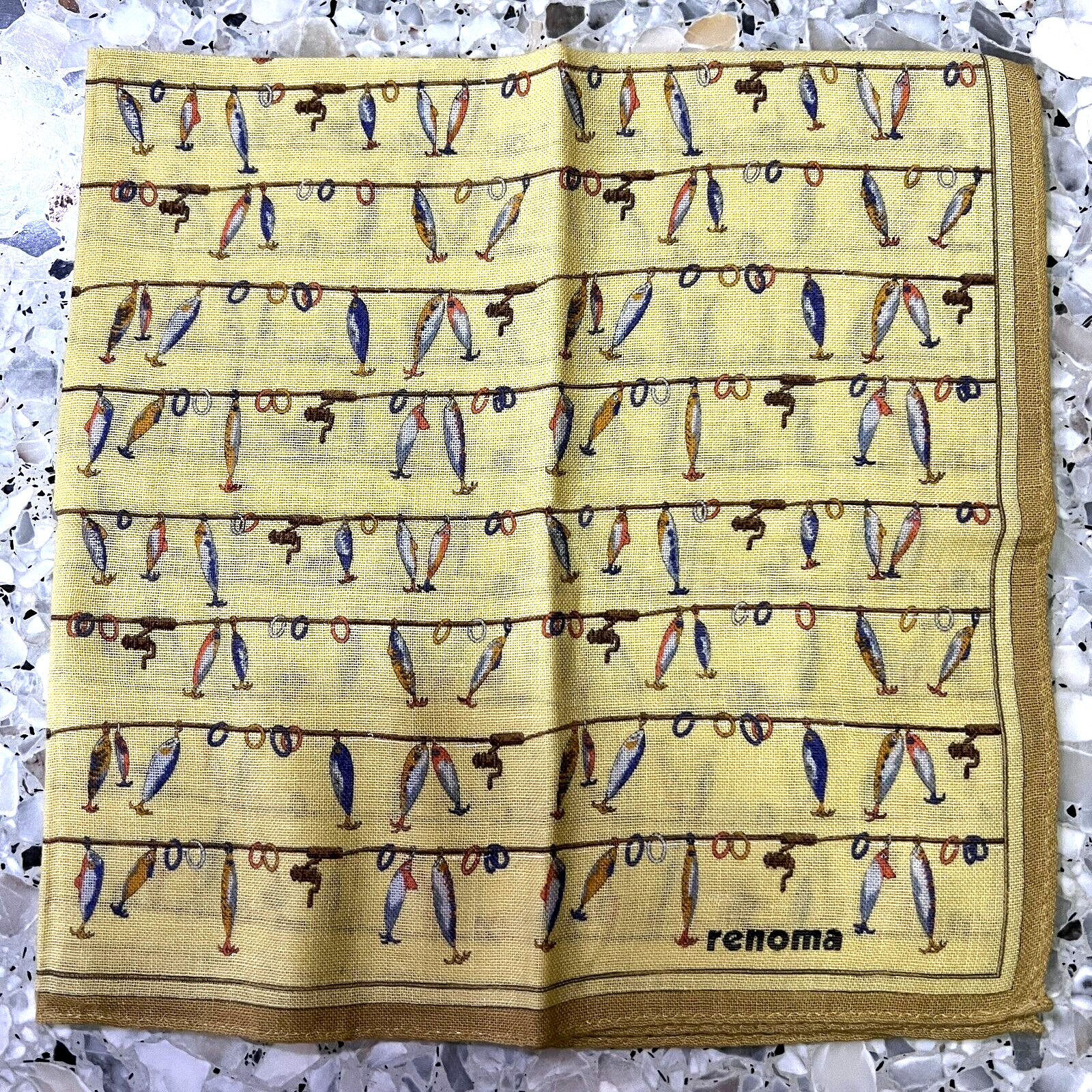 MAN YELLOW HANDKERCHIEF COTTON ART POCKET SQUARE18 CLASSIC FISHING RODS STRIPED