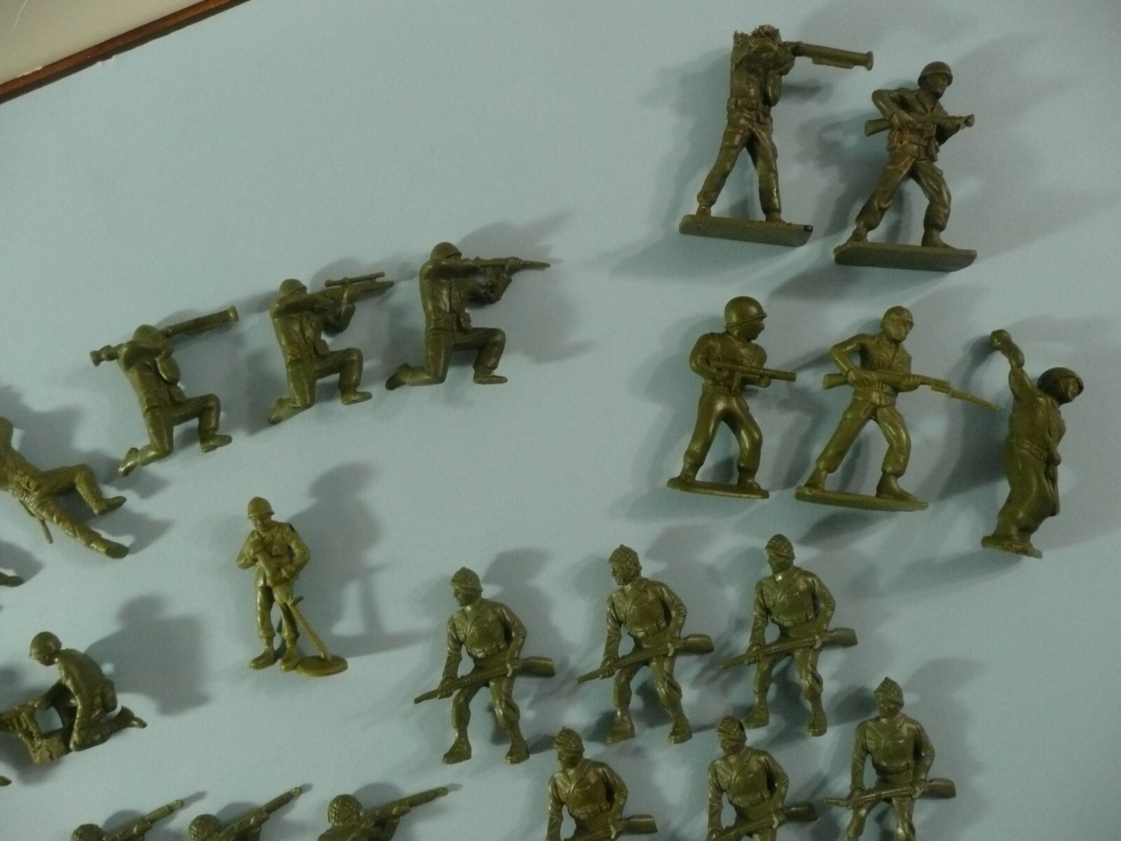 как выглядит 44 Plastic Toy Figurines - ARMY SOLDIERS most unbranded, a few TIM-MEE WERNER фото