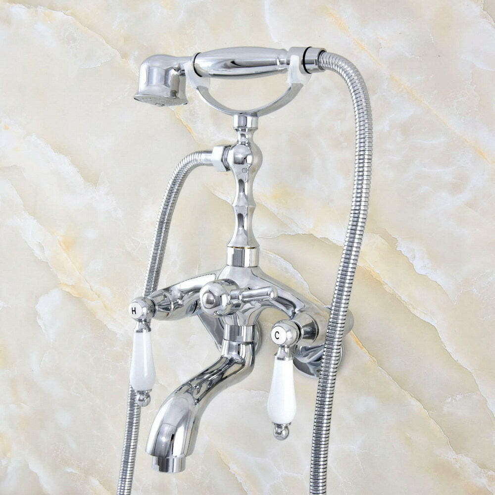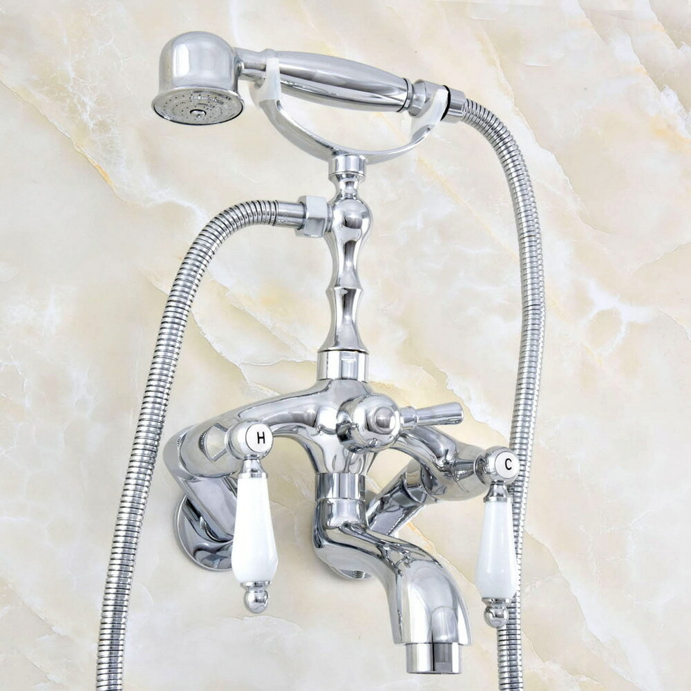 Chrome Wall Mount Bathtub Clawfoot Tub Faucet W/ Hand Shower Adjustable 3 3/8