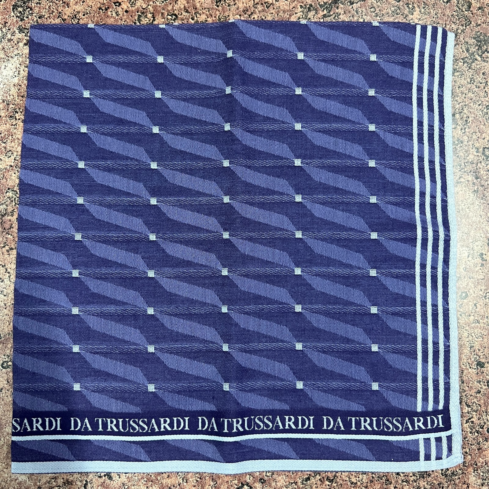 как выглядит MEN HANDKERCHIEF COTTON VINTAGE POCKET SQUARE18" CLASSIC ART PURPLE-BLUE STRIPED фото
