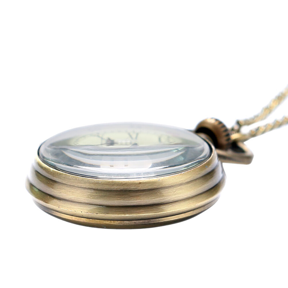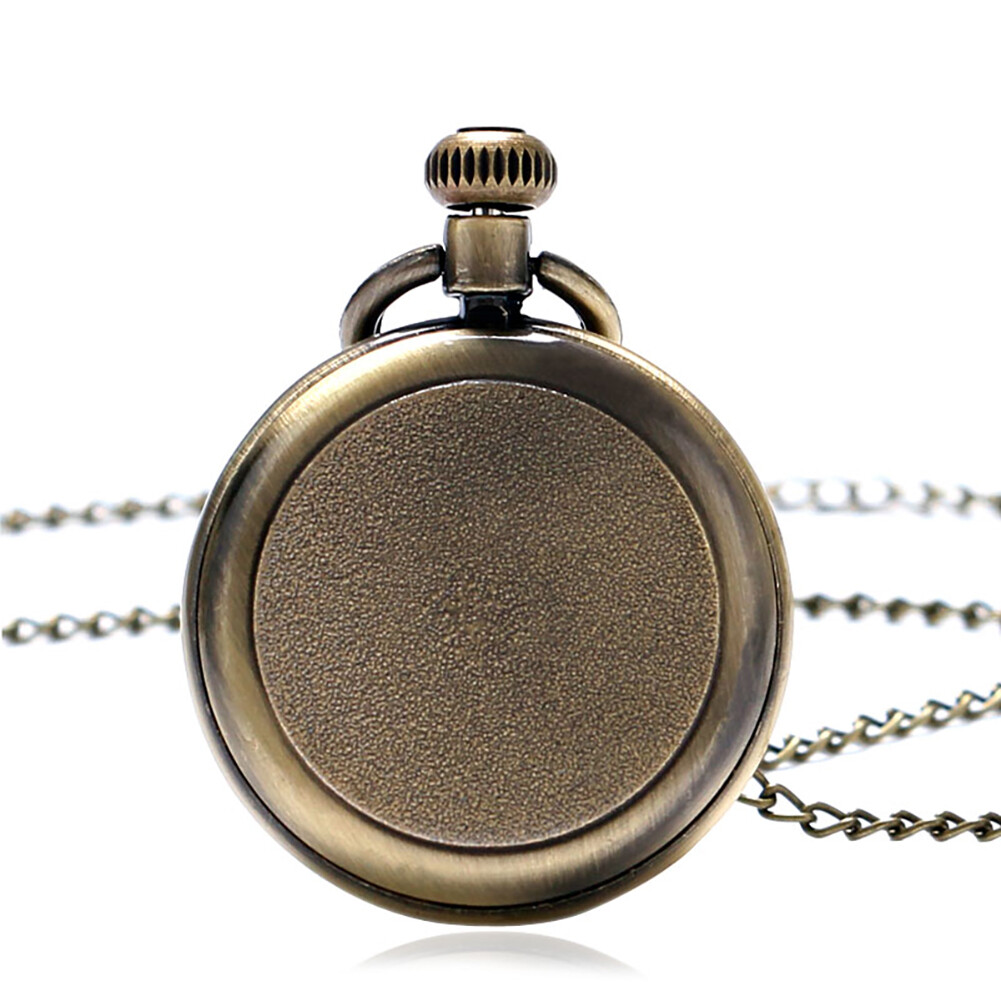 Open Face Quartz Pocket Watch Roman Numbers Analog Display with Necklace Chain